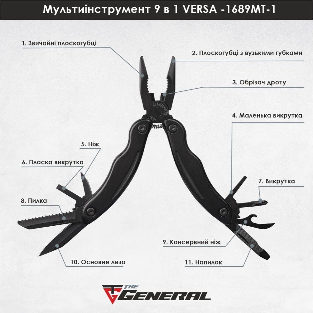 Многофункциональный инструмент, включает в себя 9 различных предметов. Размер в закрытом виде: 105х45х18 мм