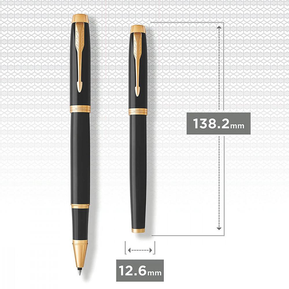 IM Black – оригинальная роллерная ручка Parker из основного ассортимента серии IM (Ай Эм). Выдающийся пишущий инструмент Parker с глянцевым лаком в классическом черном цвете. Элегантности придает отделка клипа-стрелы и колец позолотой. Элегантный и эргономичный дизайн включает удобную зону захвата из черного глянцевого пластика и классический съемный колпачок.