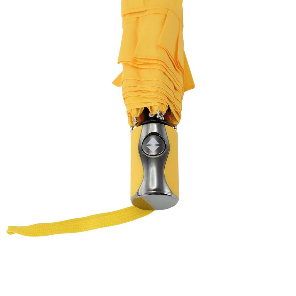 Складной автоматический зонт, с пластиковой ручкой в цвет полотна. Диаметр купола: 108 см