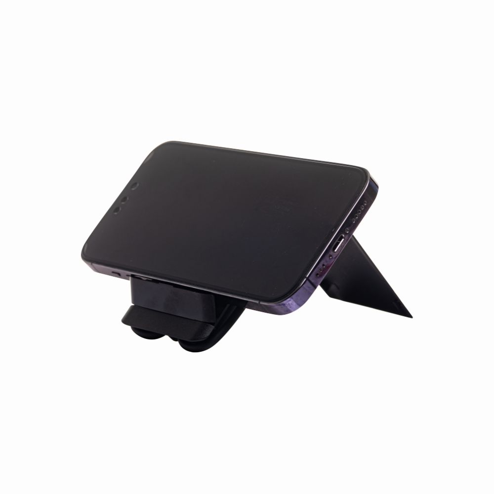 Беспроводное зарядное устройство Flow с набором переходников USB/USB C – модель 3 в 1. Комплект адаптеров с кабелем упакован в контейнер, одна из панелей которого обеспечивает зарядку телефона и выполняет роль подставки (в раскрытом виде). Модель поддерживает функцию быстрой зарядки fast charge.