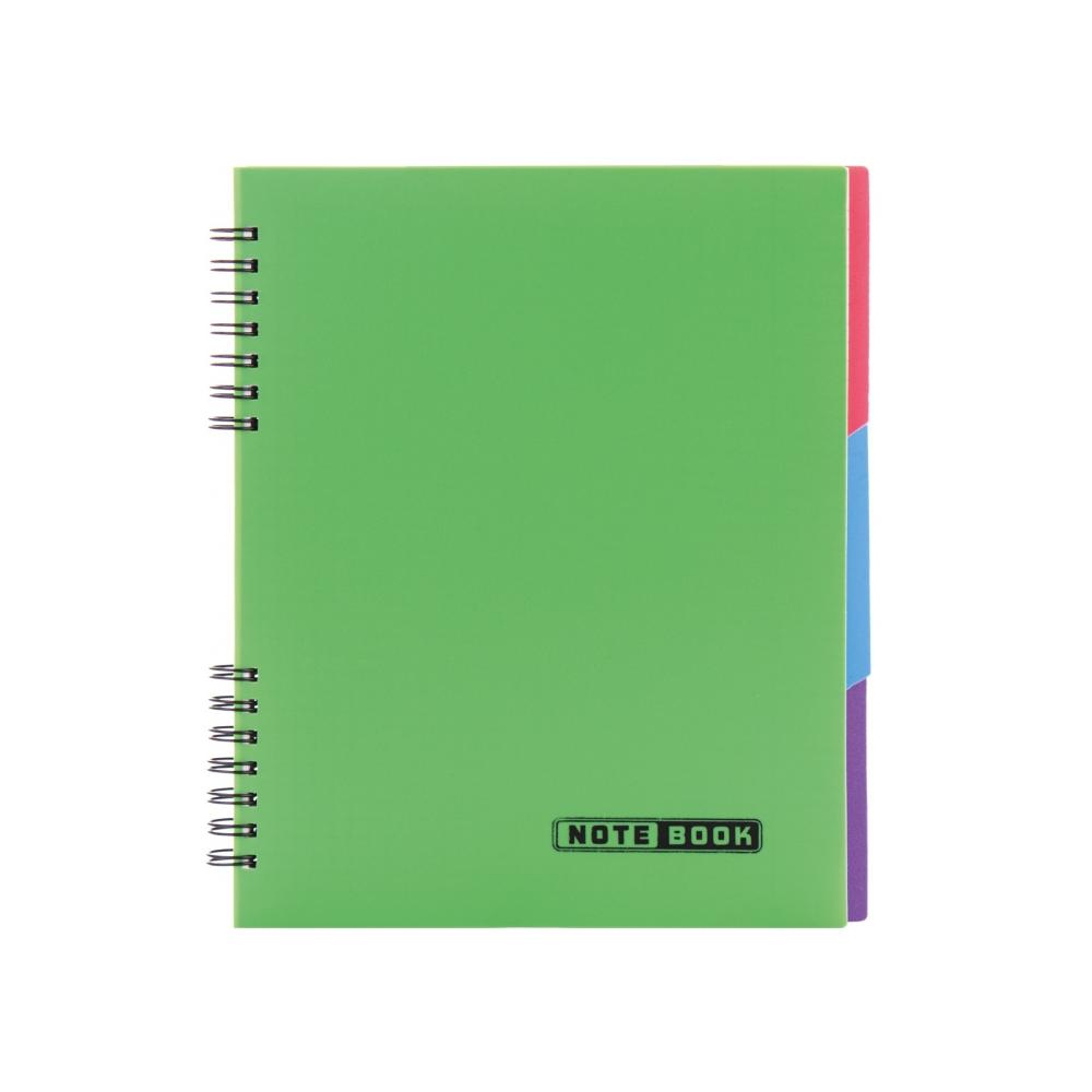 Блокнот формата B5 (170x205). Крепление блока – спираль. Обложка – пластиковая. Внутренний блок – клетка, плотность бумаги – 65 г/м², количество листов – 120. С разделителями блока. Изготовлено в Украине.