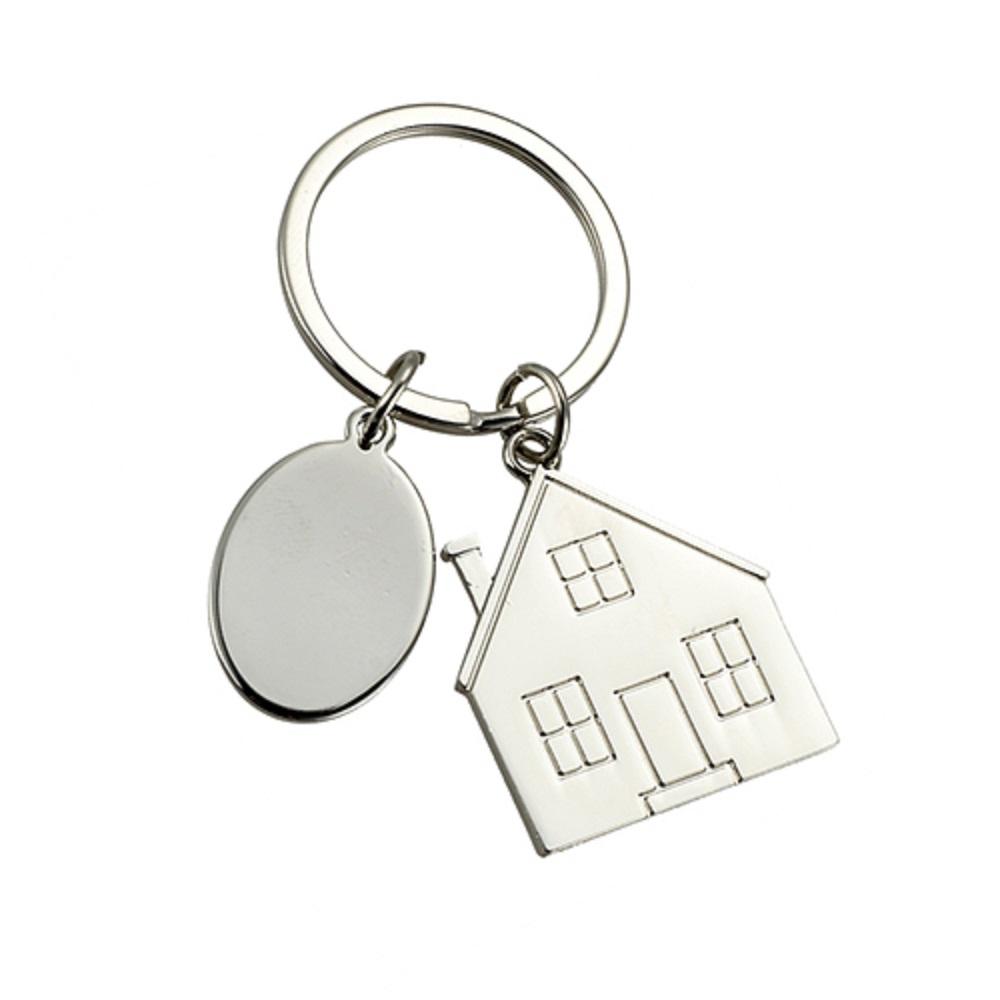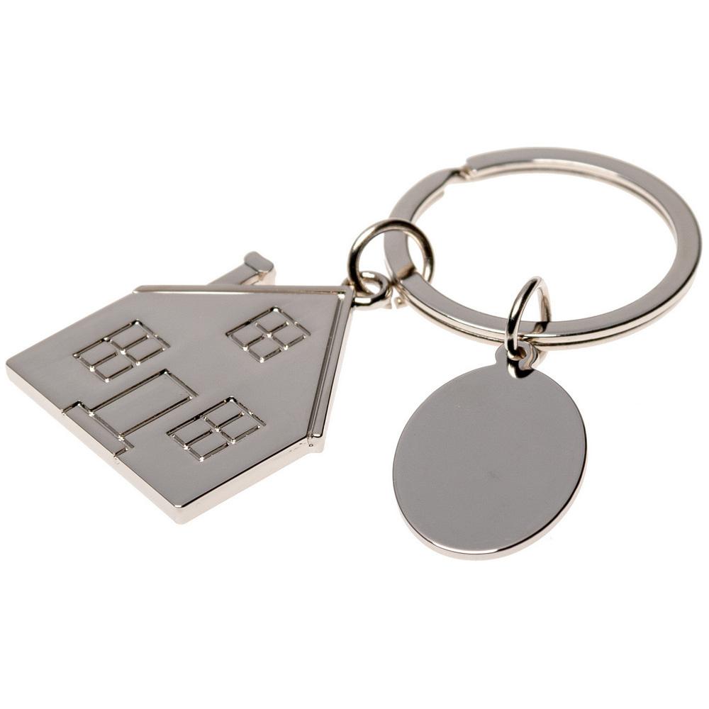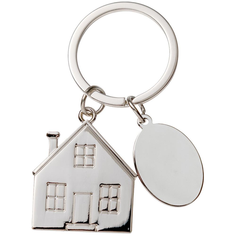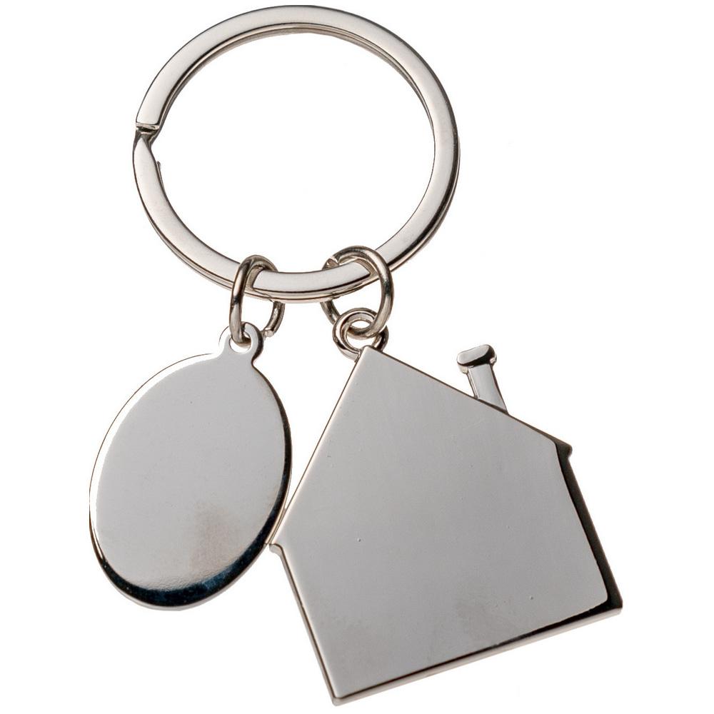 Брелок с шильдом 'Домик' металлический с индивидуальным логотипом