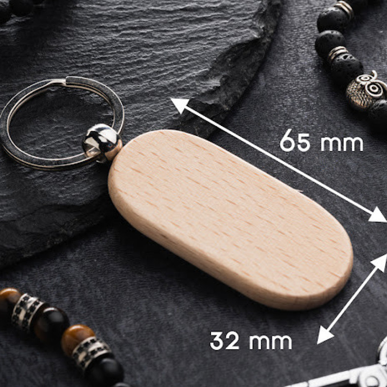 Представляем элегантный деревянный брелок овальной формы размером 65х32 мм. Идеально подходит для нанесения логотипа, этот брелок станет отличным аксессуаром для ключей, подчеркивая ваш стиль и индивидуальность.