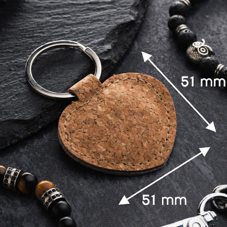 Брелок для ключей пробковый с кольцом. 32мм сердце 51х51мм под лого