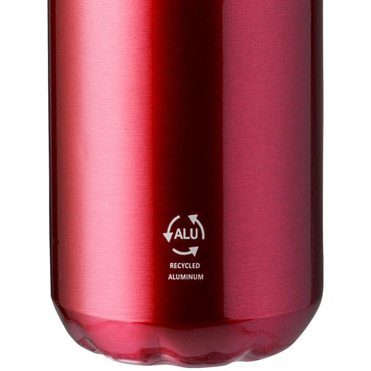 Алюминиевая бутылка для воды с крышкой из нержавеющей стали. Удобный аксессуар для любителей активного образа жизни. В нижней части корпуса выгравирован логотип переработанного алюминия.