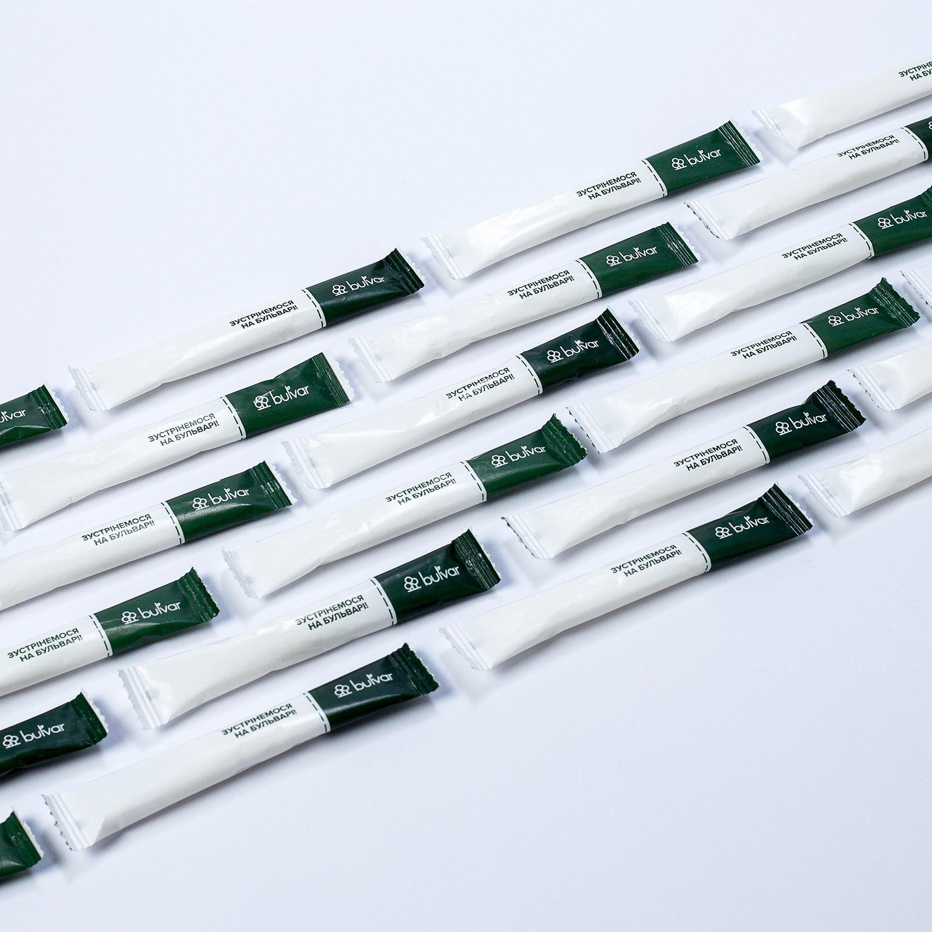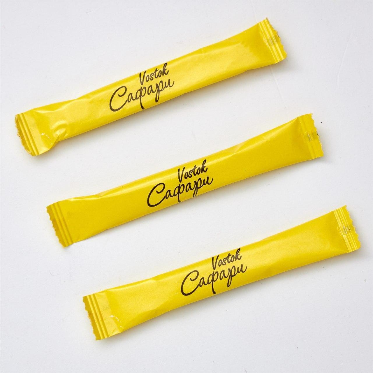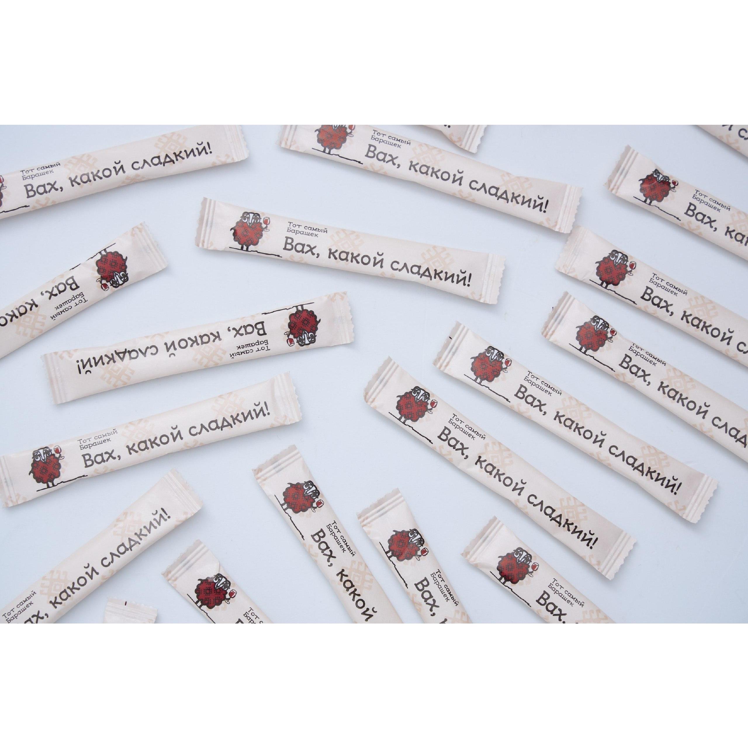 Высокое качество: Сахар фасуется на собственном производстве с соблюдением всех норм, обеспечивая точность веса (5 г) и эстетичный вид упаковки.