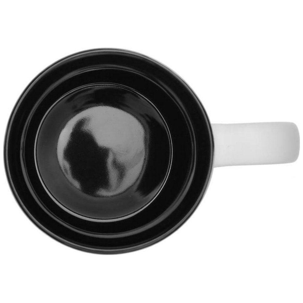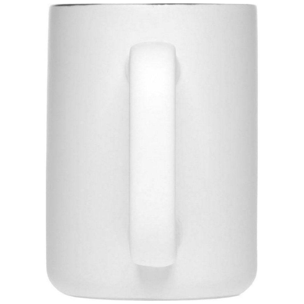 Белоснежная кружка изготовлена из высококачественной керамики. Матовая снаружи, нижний торец кружки покрыт матовой глазурью. Возможно нанесение изображения на боковую поверхность, а также на внутреннюю поверхность. Нанесение изображения на внутреннюю поверхность кружки возможно только в верхней четверти изделия.