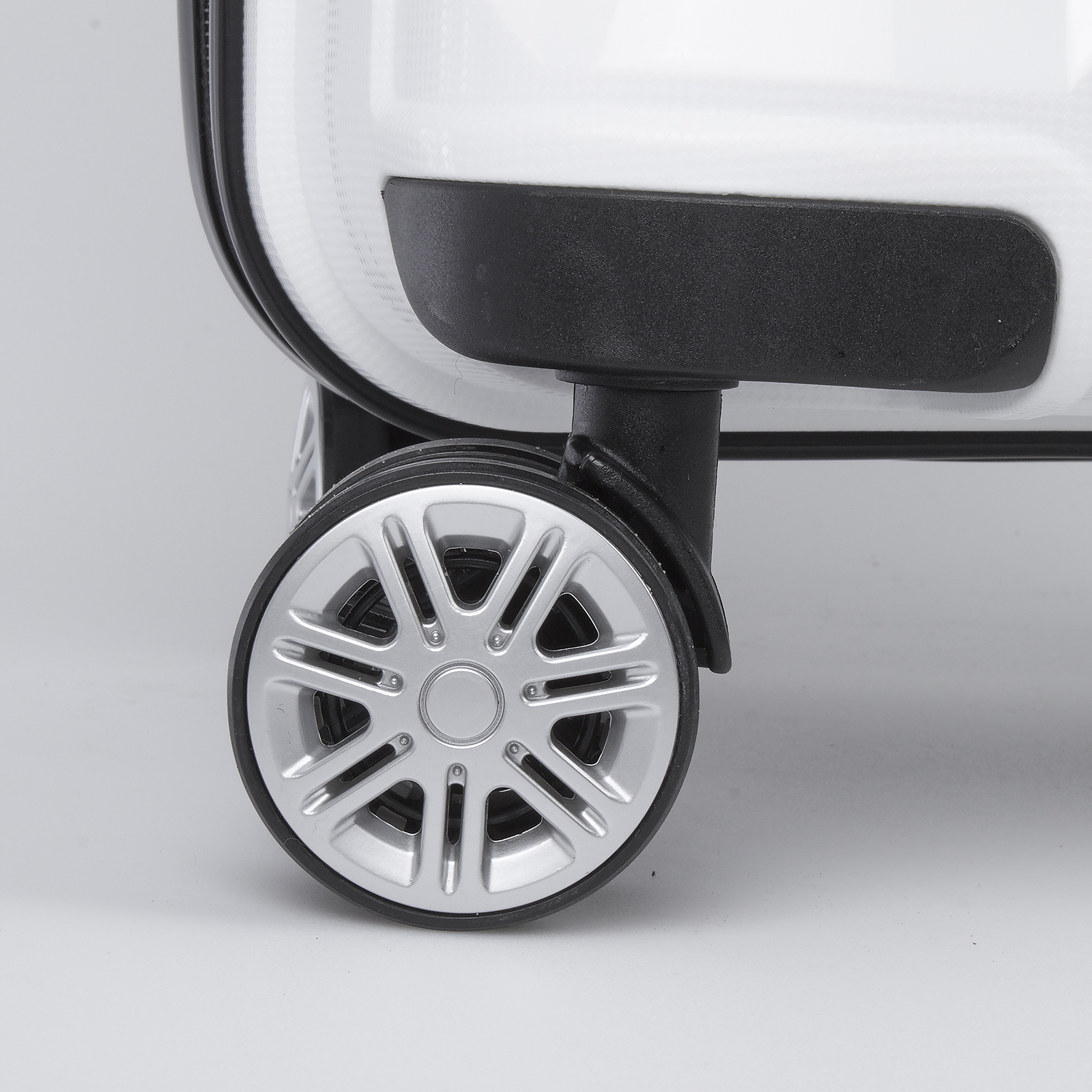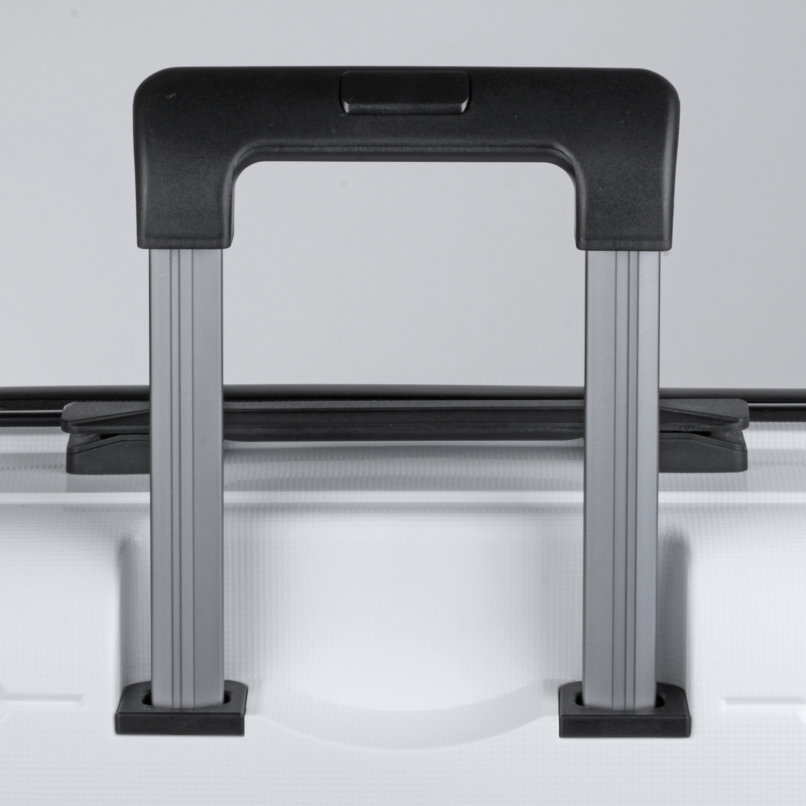Сверхлегкий и крепкий чемодан на 8-ми (4х2) колесах TM Columbus. Оснащена кодовым замком системы TSA, алюминиевой телескопической ручкой с фиксаторами. Внутри обшита тканью, имеет 2 отделения, разделяемые диафрагмой и карман на молнии для мелких вещей; эластичные пояса для фиксации вещей.