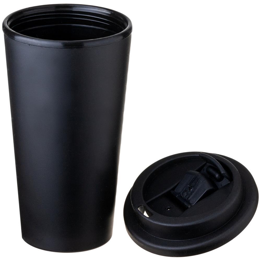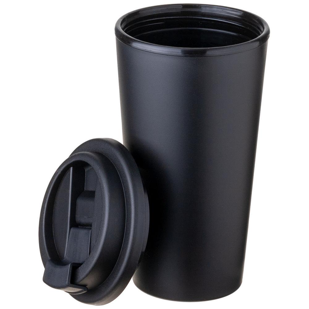 Стакан с двойными стенками из PP. Крышка системы флип-топ. Резьбовое соединение крышки со стаканом и прорезиненная вставка для защиты от проливания.