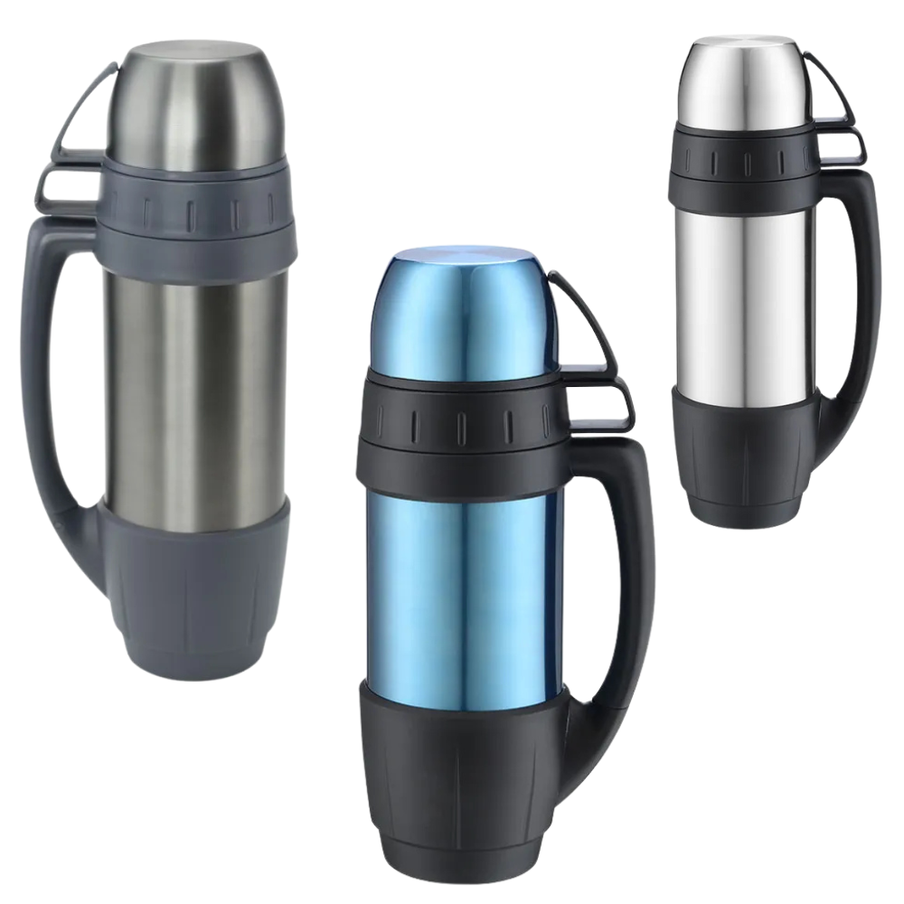 Однозначно не термокружка! МАХ объем. Большой, дорожный термос vip качество под нанесение логотипа. Напиток сохраняет свою температуру 48 часов. Стенки термоса не окисляются и не ржавеют. Технологичная и красивая модель. Вы оцените комфорт от широкой ручки для переноса, и удивительной крышки. Она состоит из 2-х отдельных чашек. Корпус Campania сделан из нержавеющей стали. Между двойными стенками вакуумное пространство. Низ термоса устойчивый и покрыт полипропиленовой массивной накладкой. Это защищает его в дороге от падения.