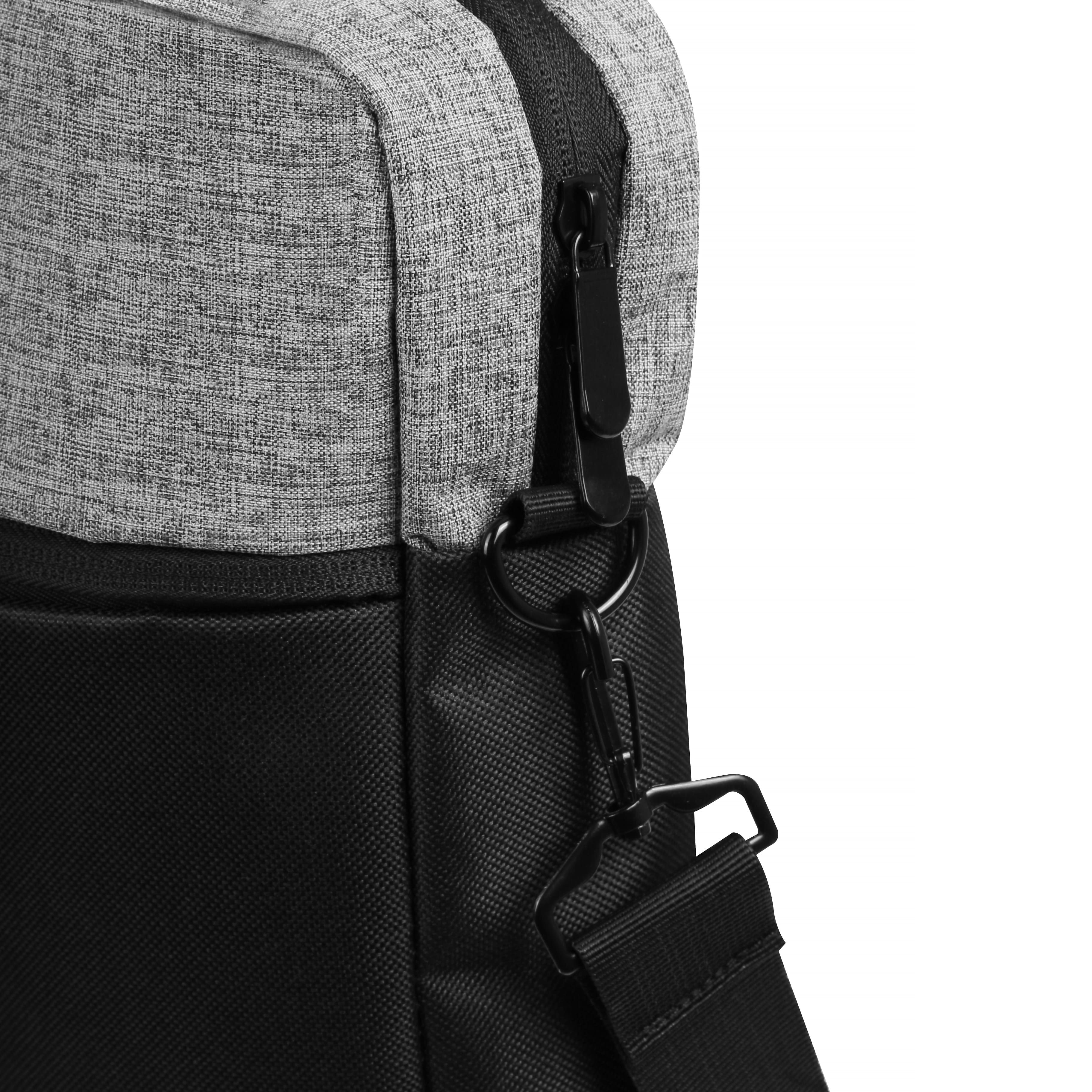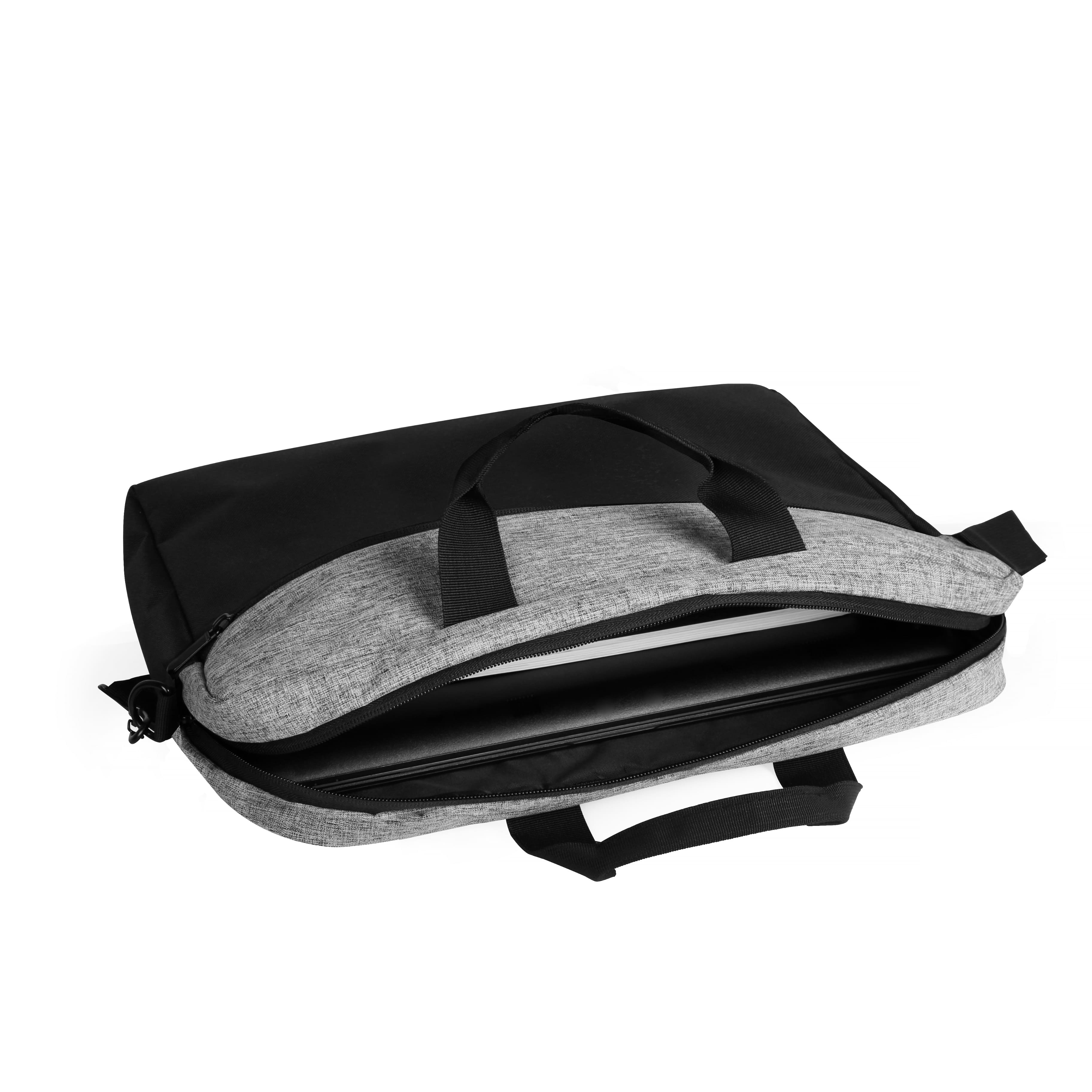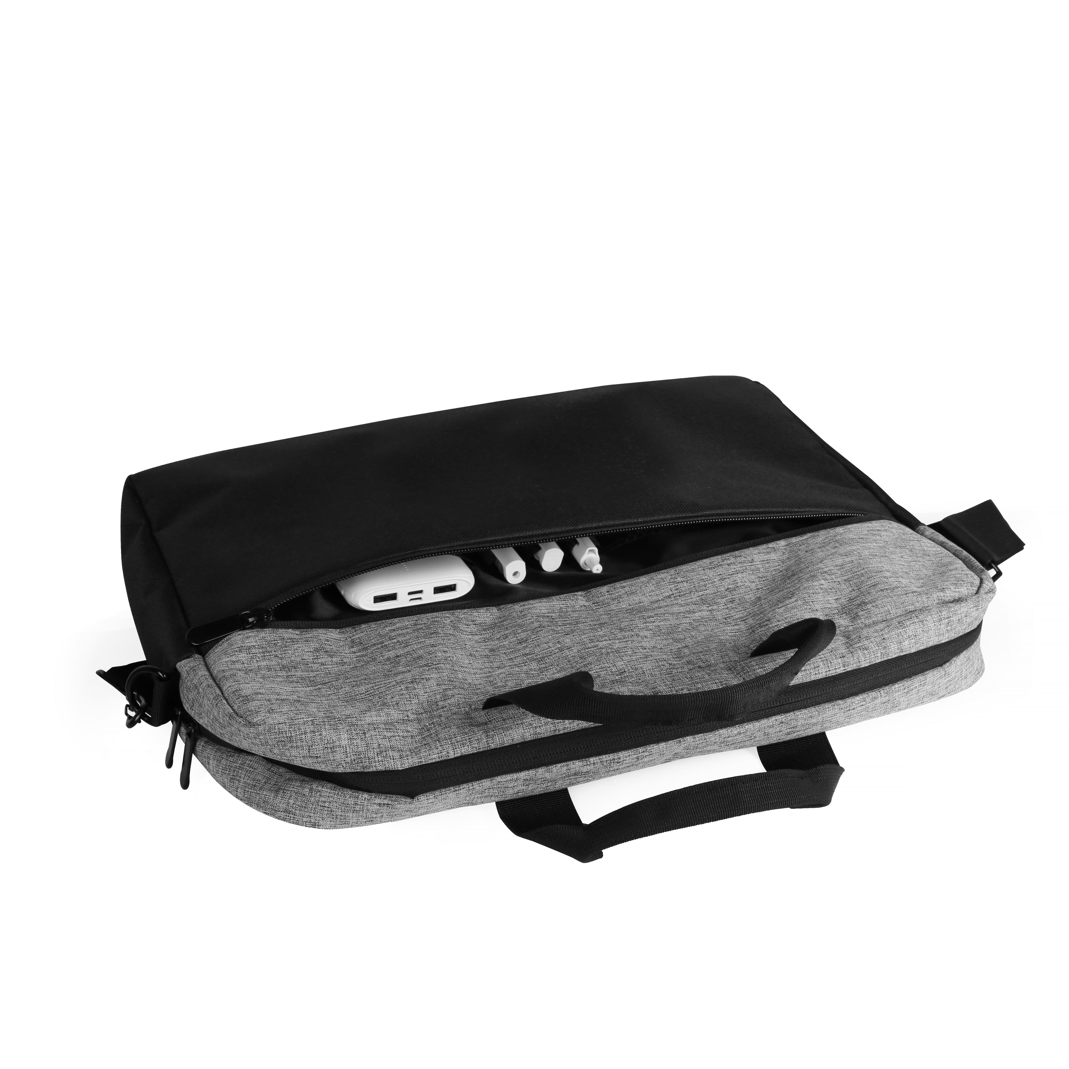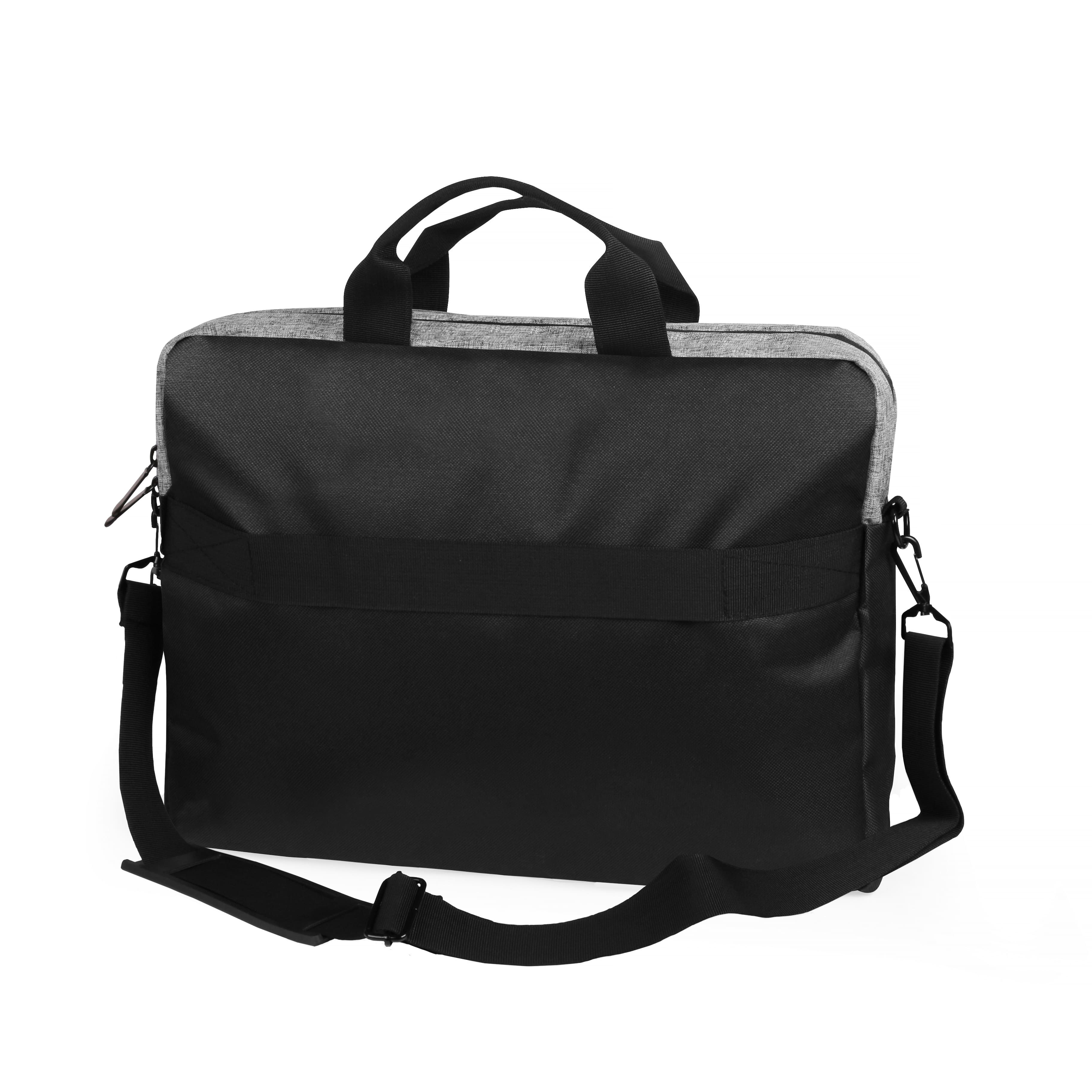 Сумка для ноутбука 15". Основное отделение, отделение для ноутбука с мягким уплотнителем, один внутренний карман на молнии и один внешний карман на молнии и с другой стороны ремень-держатель для транспортировки на чемодане.