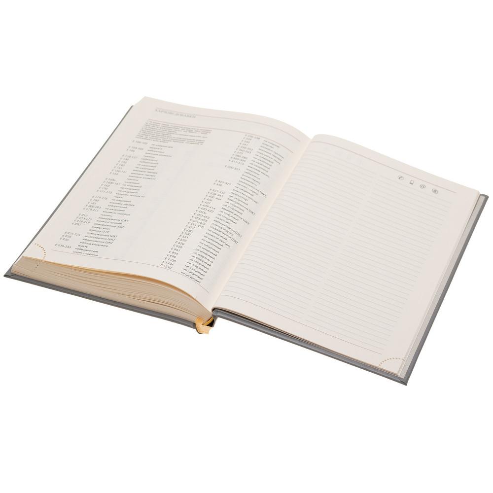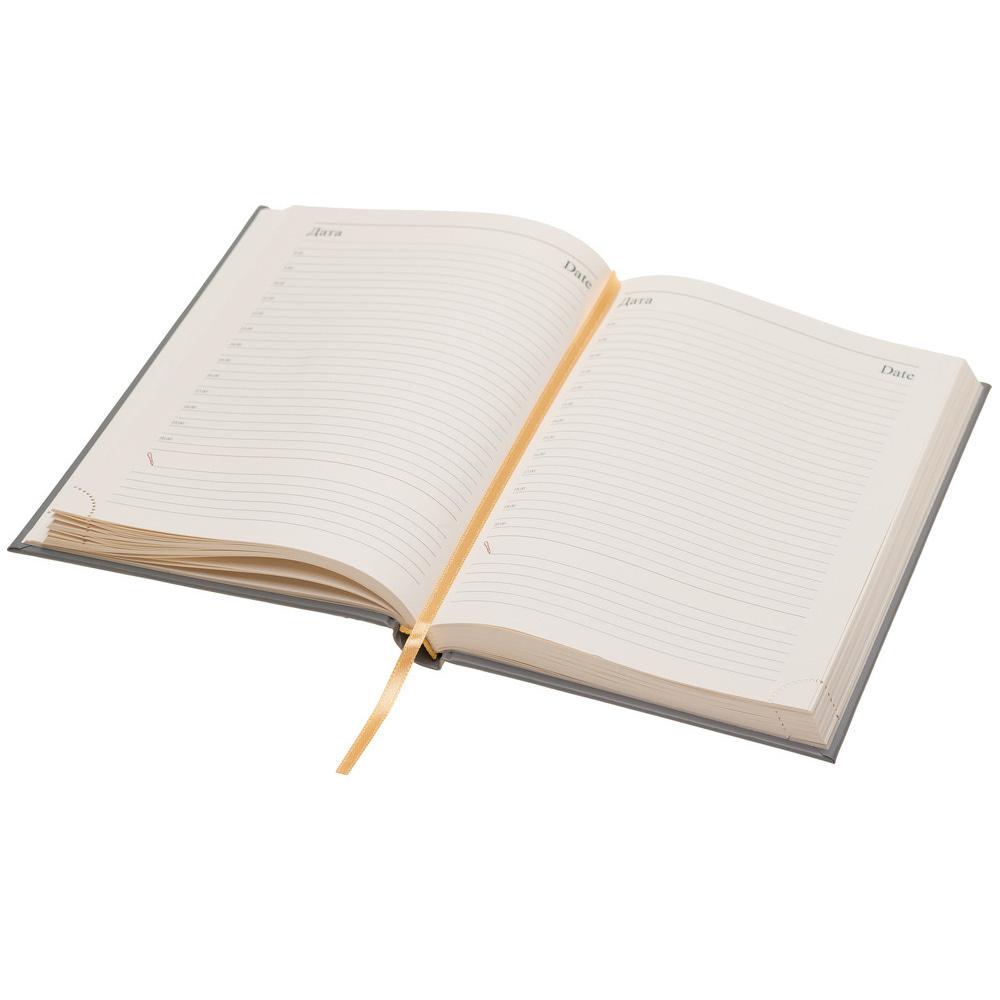 Недатированный ежедневник. Формат А5 (145 x 205 мм). Бумага сертифицирована FSC. Твердая обложка из высококачественного итальянского кожзама.