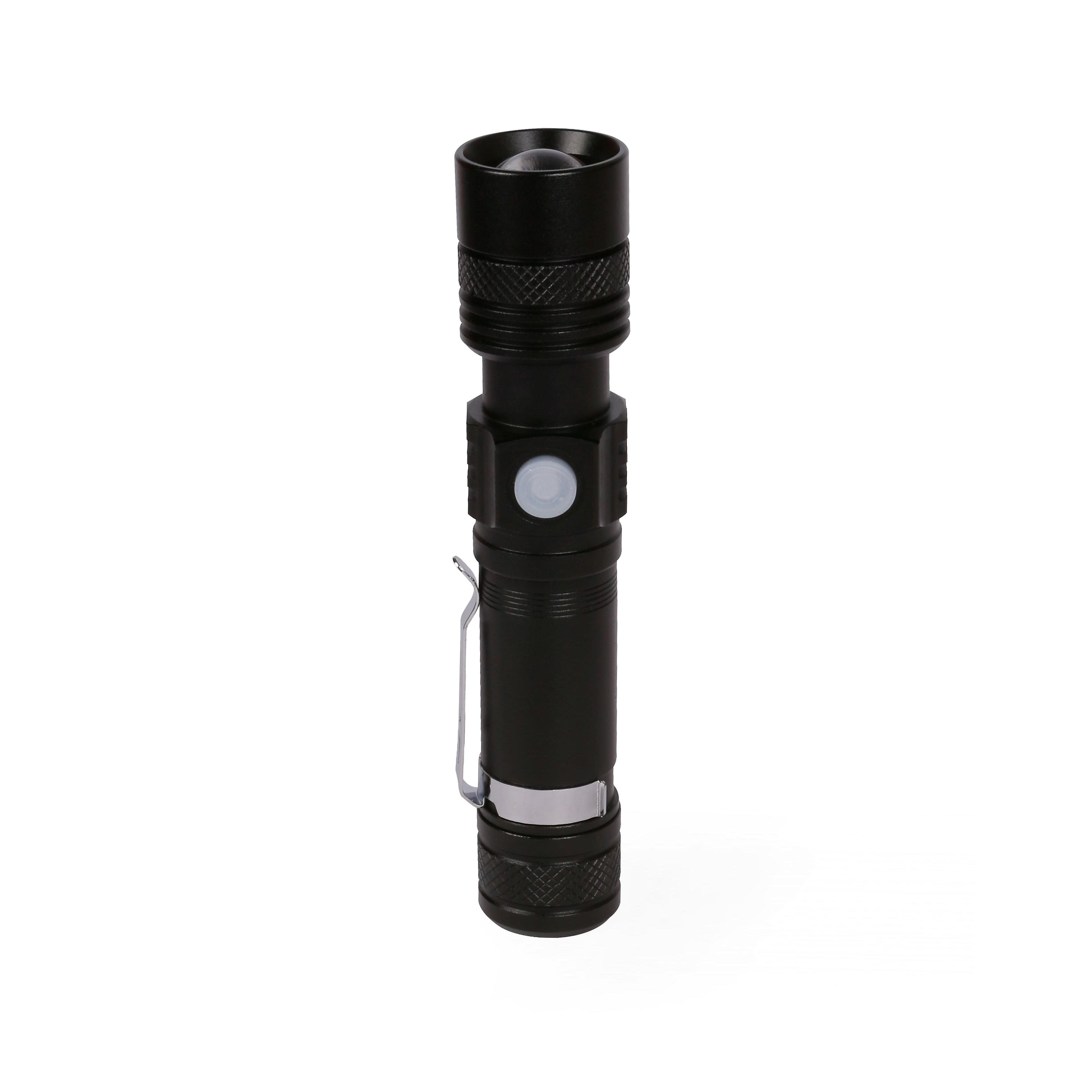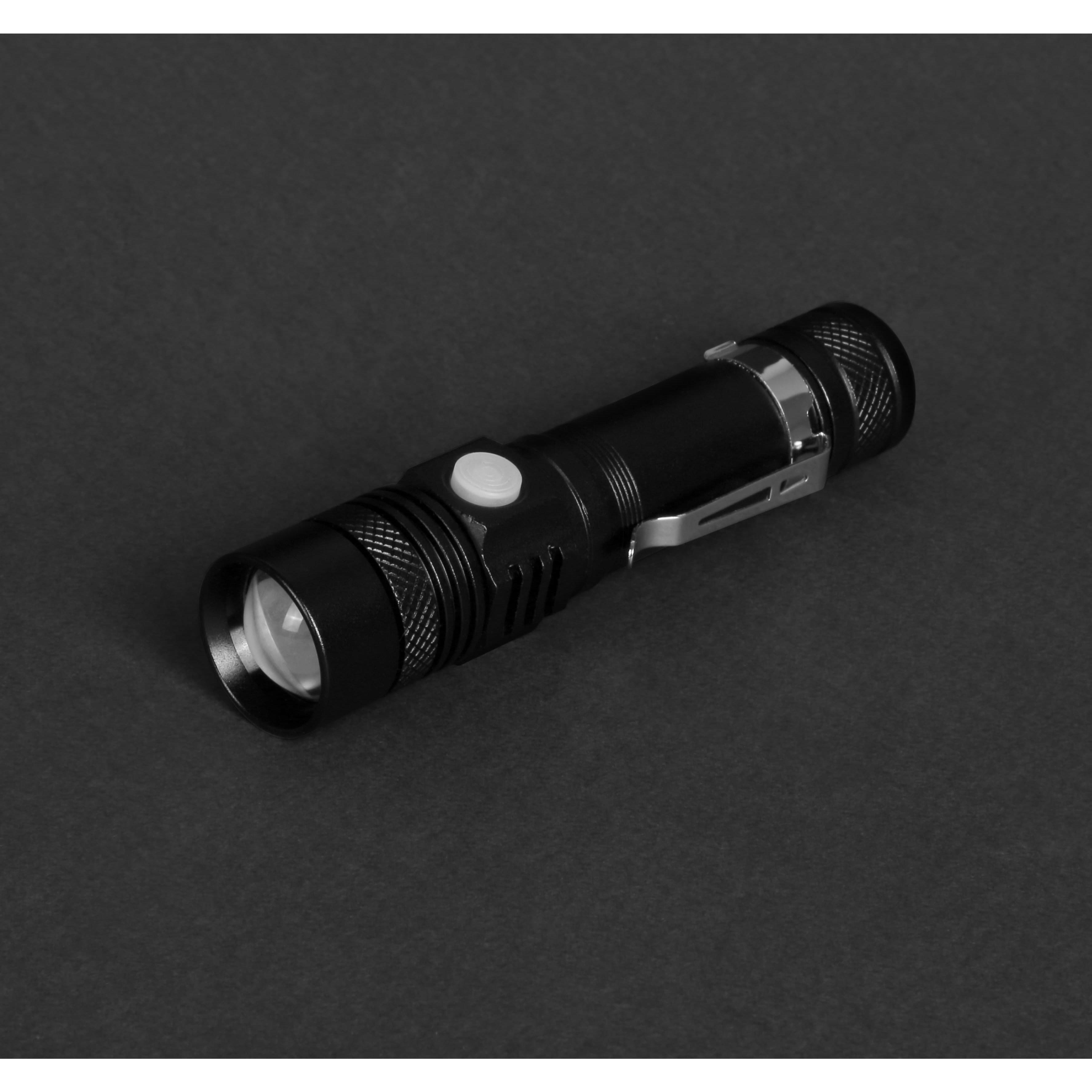 Черный фонарик Focus, TM Discover с зарядкой от USB с логотипом