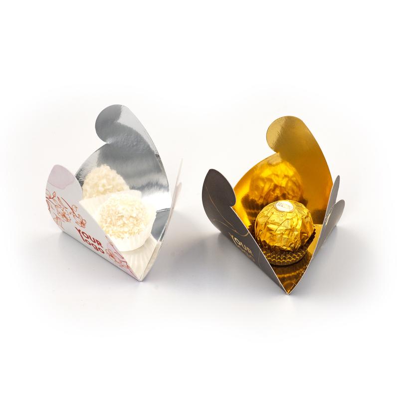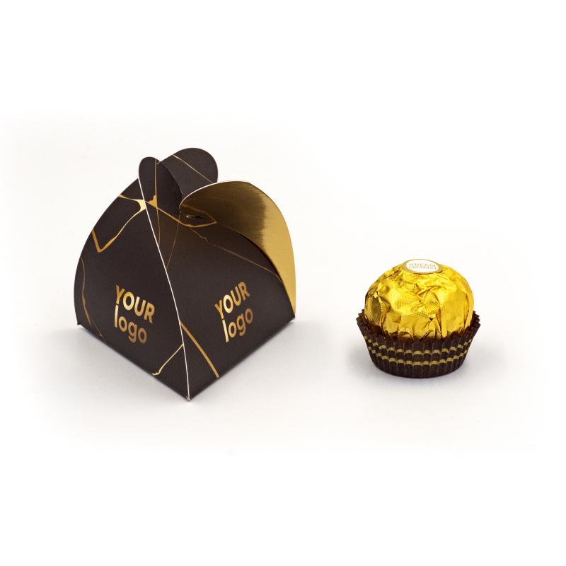 Станьте частью особенных моментов с изысканным подарочным набором: конфета Ferrero с логотипом в стильной коробочке в форме трилистника. Идеальное решение для корпоративных подарков, праздничных мероприятий или свадеб.