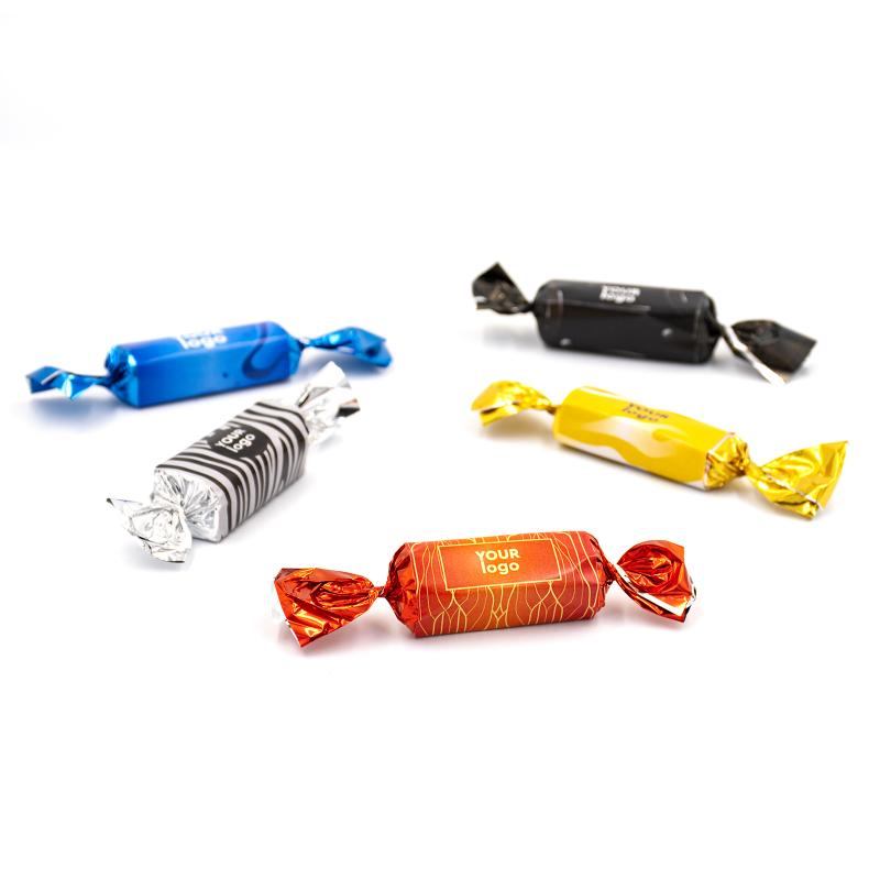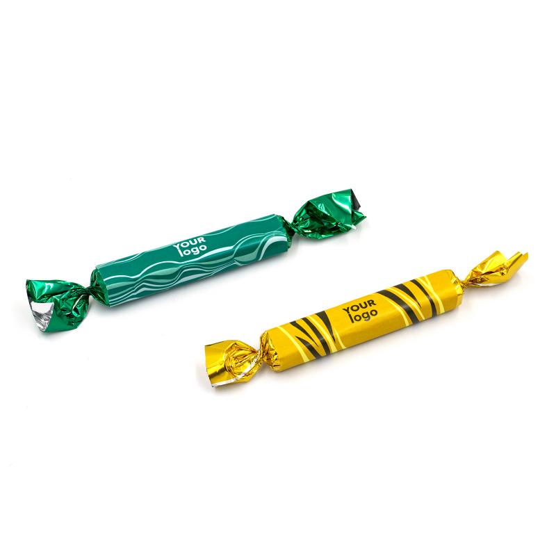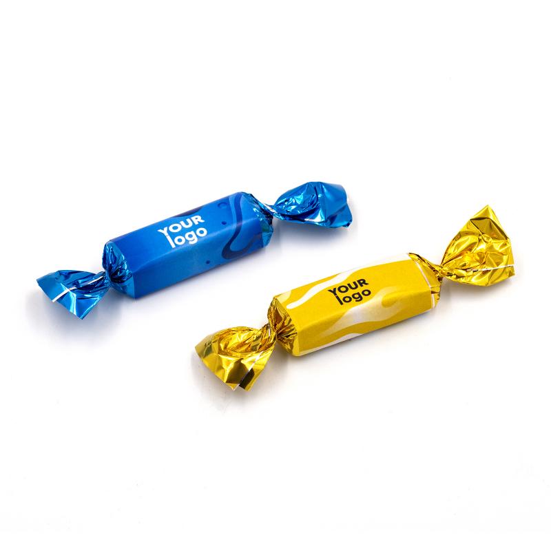 Конфета "Пастила фруктовая" с логотипом (10-20 г) - натуральная пастила с фруктово-ягодным вкусом, подаваемая в индивидуальной брендированной упаковке. Предлагается в вариантах вкусов, таких как груша, абрикос с яблоком, клубника с яблоком и другие. Упаковка – цветная твист-пленка разных цветов. Идеально подходит для промомеров.