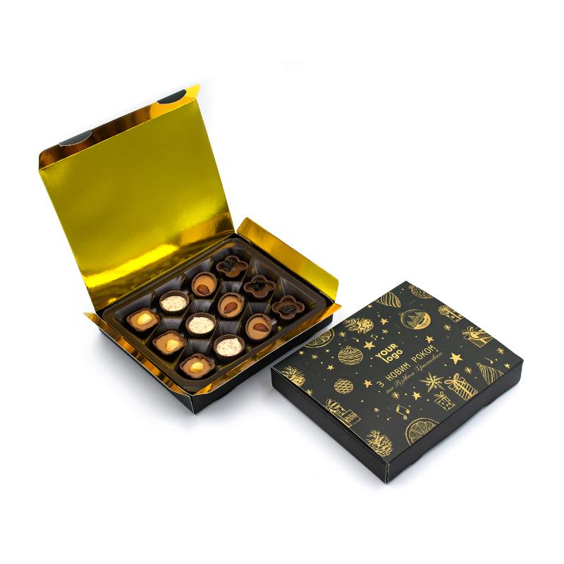 Коробка конфет le Grand “Книга” 110 г с логотипом сочетает стильный дизайн и изысканный вкус. Ассорти с нежнейшими начинками в хрустящей оболочке из тёмного шоколада с добавлением цельных орехов дарит настоящее удовольствие.