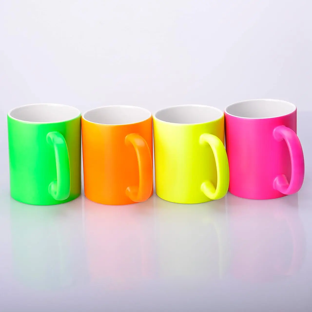Кружка для сублимации Sublime неоновая с логотипом, керамика, 330 мл идеально подходит для создания яркого и индивидуального подарка благодаря его неоновой поверхности и возможности нанесения сублимационной печати.