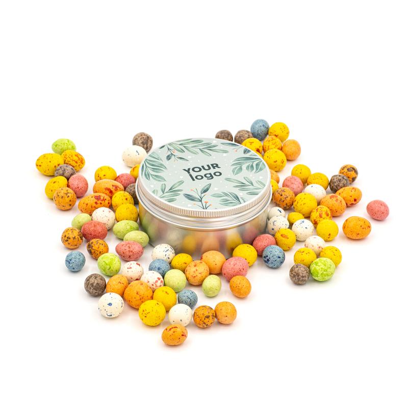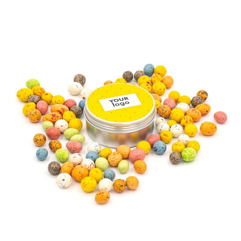 Набор шоколадных яиц с логотипом — это вкусный и оригинальный подарок в стильной упаковке. Внутри — хрустящее арахисовое драже в шоколаде, которое сочетает сладкий вкус и приятную текстуру.