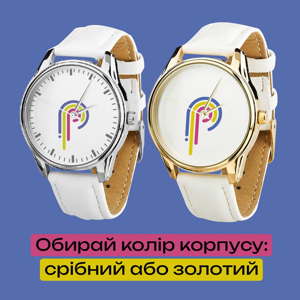 Часы наручные серебристые с цветным ремешком из экокожи с вашим лого