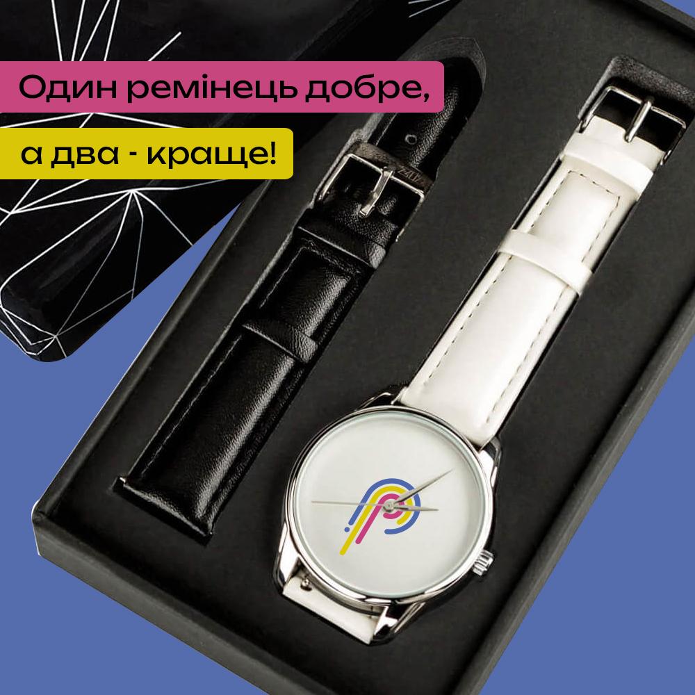 Рекомендуем дополнить часы вторым сменным ремешком: один - смелый и корпоративный, другой - темный и консервативный. Экокожа, используемая в ремешках, не только стойка к времени, но и приятна на ощупь, гарантируя комфорт в любой ситуации. И хоть технически на ремешок нельзя наносить логотип, подобрав цвет ремешка в цветах логотипа вы создадите стильное цветовое решение и уникальный корпоративный атрибут.
