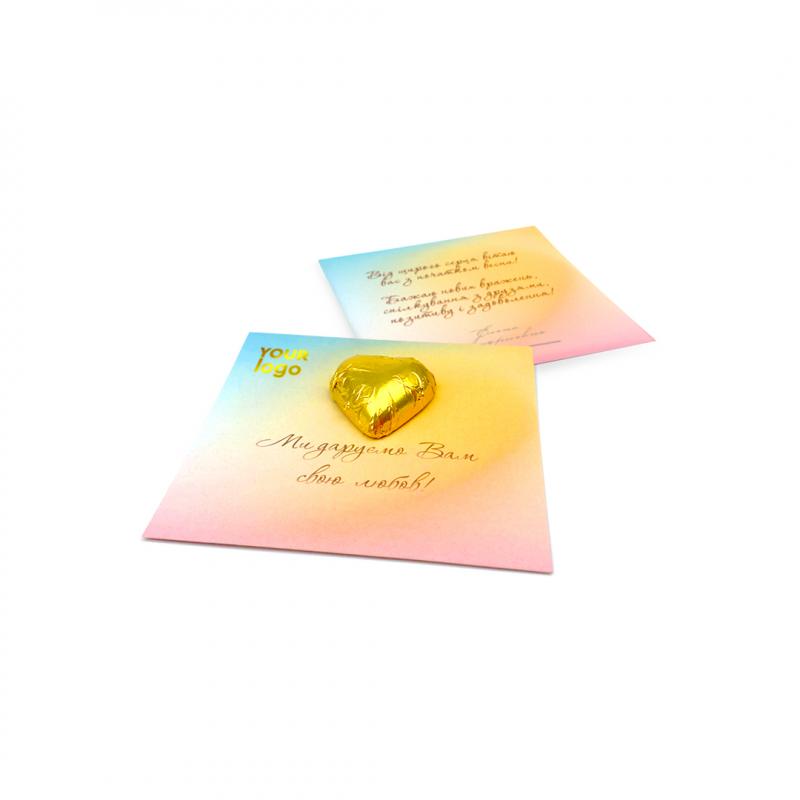 Открытка с логотипом и натуральным немецким шоколадом – это отличный способ выразить благодарность и внимание к вашему клиенту, партнеру или близкому человеку. Этот подарок сочетает в себе изысканный дизайн и самые лучшие качества натурального шоколада. Это стильный и элегантный способ подарить шоколад, придавая ему особый шарм.