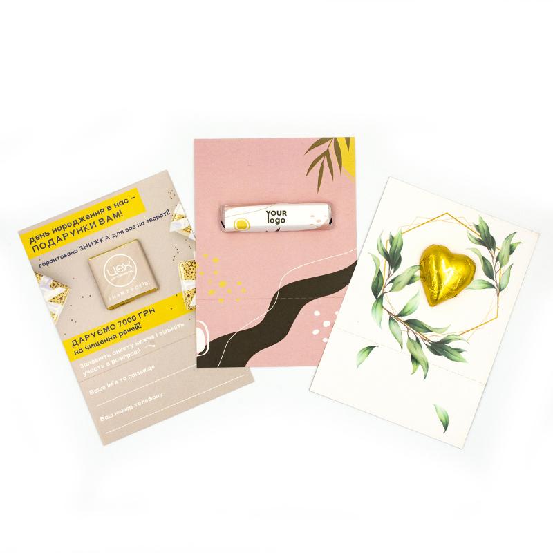Открытка с логотипом и натуральным немецким шоколадом премиум-класса это не просто вкусный десерт, но и элегантный и особенный подарок. Эта комбинация изысканного дизайна, изысканного вкуса и возможности размещения собственного бренда делает его идеальным вариантом для выражения вашего уважения и внимания. Натуральный немецкий шоколад, это настоящий шедевр сладостей, раскрывающийся по вкусу.