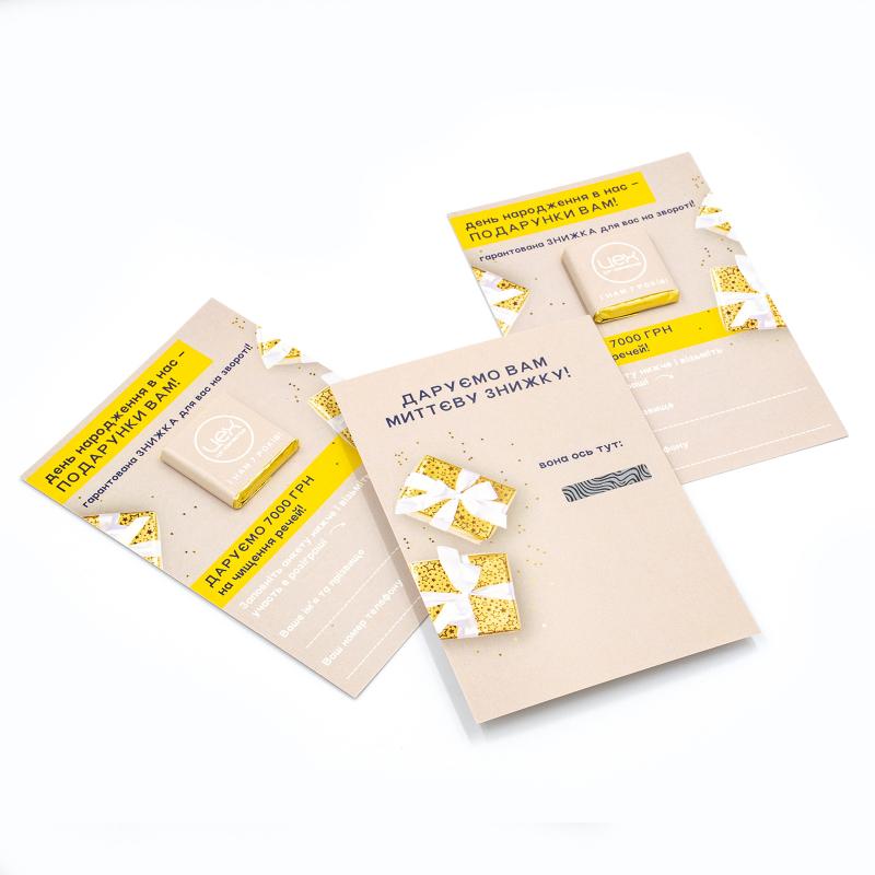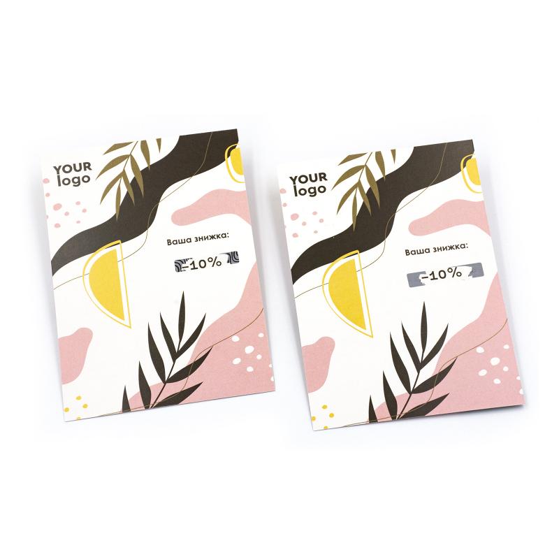 Открытка с логотипом "скретч нанесения и отрывная часть"