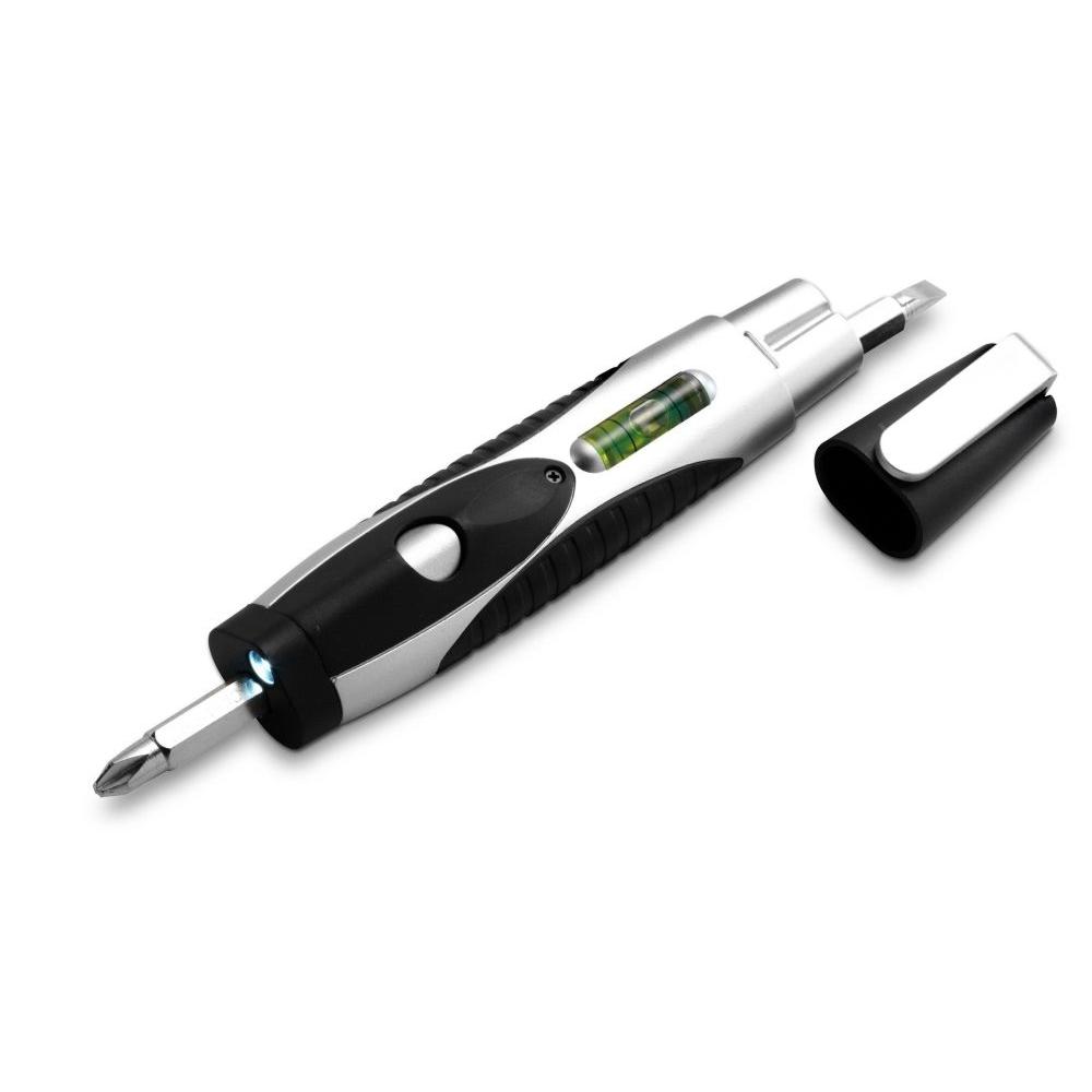 Многофункциональный инструмент: отвертка с 4 различными резьбовыми наконечниками, спиртовой уровень и синий светодиод