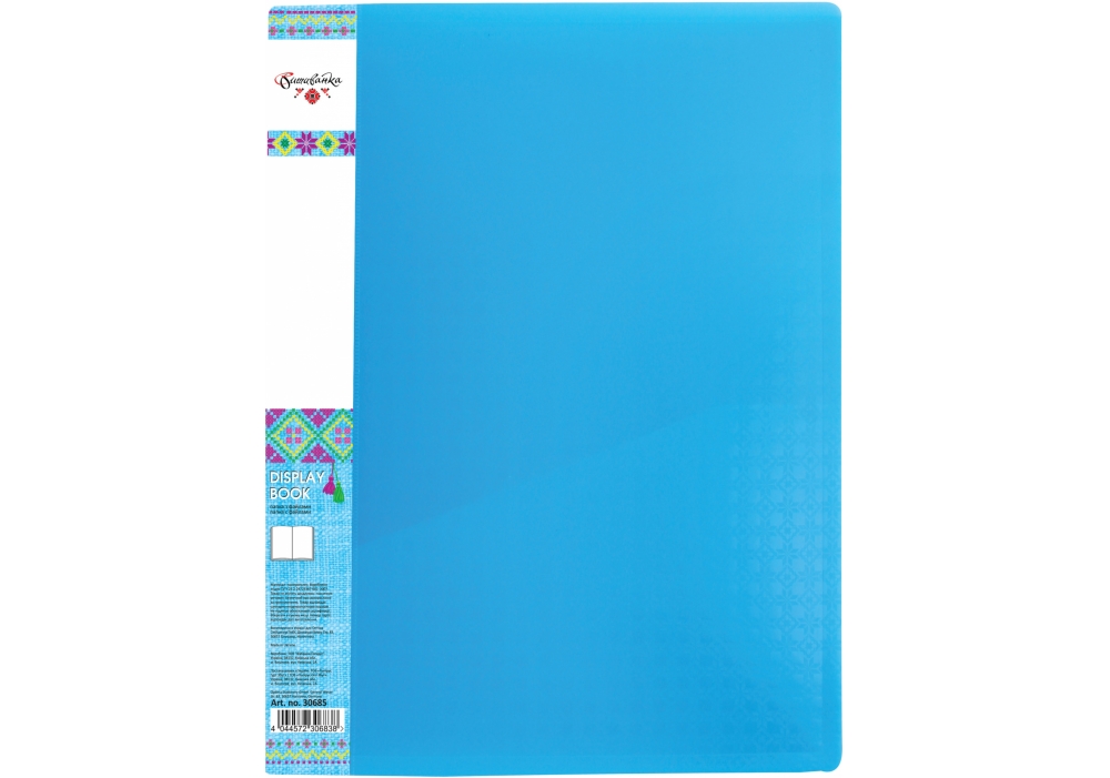 Папка с файлами предназначена для хранения материалов и документов формата А4, которые требуют упорядоченности и наглядного обзора: отчетов, презентаций, коммерческих и персональных портфолио. Изготовлена из пластика толщиной 600 мкм, содержит 30 прозрачных вкладышей, а также карман на корешке для сменной этикетки. Вмещает до 60 листов стандартной плотности. Преимуществом данной папки является надежное хранение документов в отличном состоянии без предварительной перфорации.