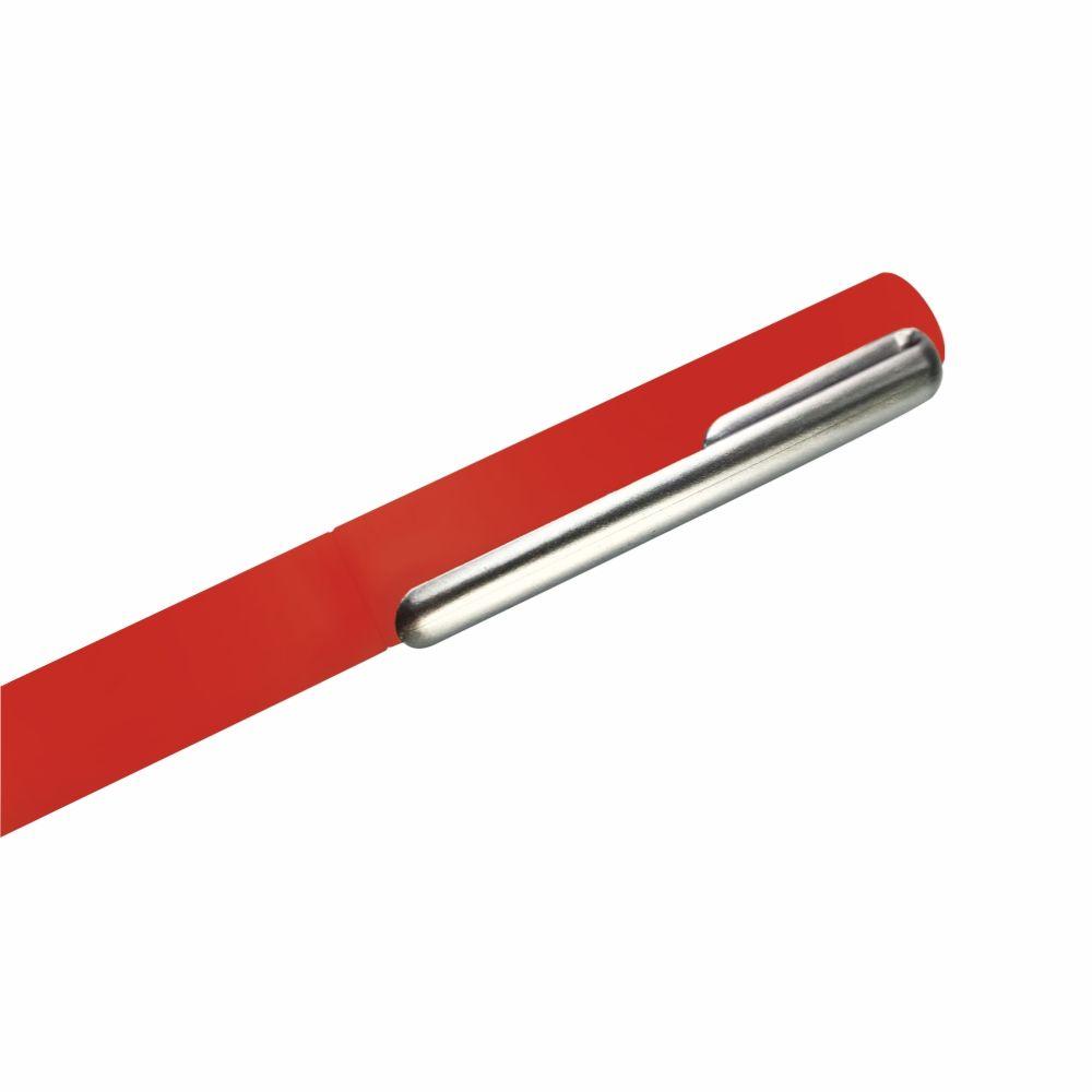 Ручка обладнана пластиковим затискачем сріблястого кольору. За допомогою затискача вона кріпиться в кишені рюкзака чи сумки.