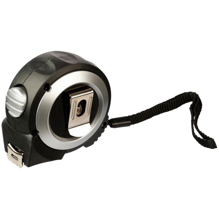 Корпус рулетки изготовлен из прочного пластика и металла, что гарантирует долговечность и устойчивость к механическим повреждениям. Для удобной транспортировки и хранения предусмотрены зажим для ремня и нейлоновая петля.