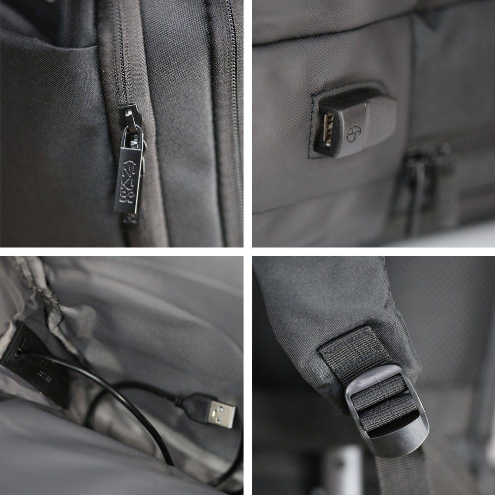 Рюкзак имеет продуманную конструкцию: три отдельных отделения на молнии позволяют удобно организовать внутреннее пространство. Переднее — самое маленькое, оснащено кармашками для ручек, карточек и кошелька. Среднее — самое вместительное, с дополнительными внутренними отсеками для хранения личных вещей, документов или аксессуаров. Третье отделение оборудовано мягкими карманами для ноутбука и планшета. На спинке расположено потайное отделение на молнии.