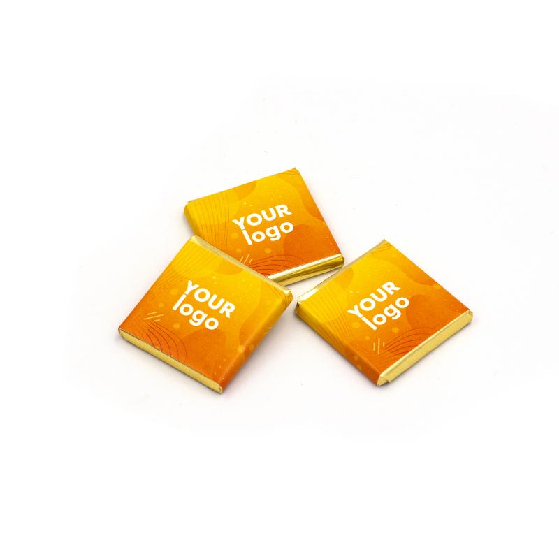 Шоколадная глазурь с логотипом 4 г — вкусный брендированный сувенир для мероприятий, презентаций или промоакций. Обладает темно-молочным вкусом, привлекательным внешним видом и компактными размерами (35 х 34 х 4 мм).