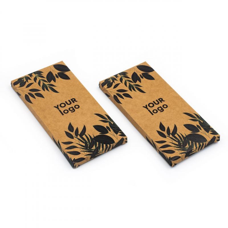 Подарите изысканное удовольствие с фирменной шоколадной плиткой в стильной крафтовой упаковке типа «пенал». Идеально подходит для бизнес-подарков, мероприятий, конференций или промо-акций.
