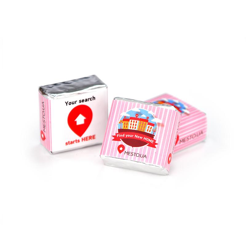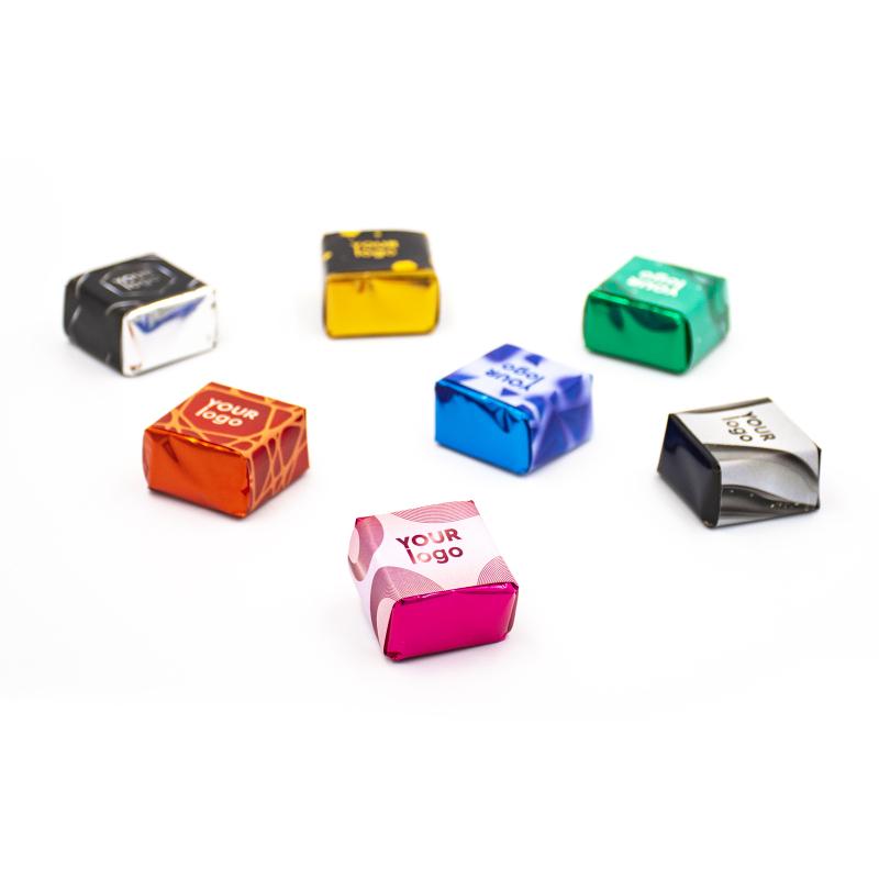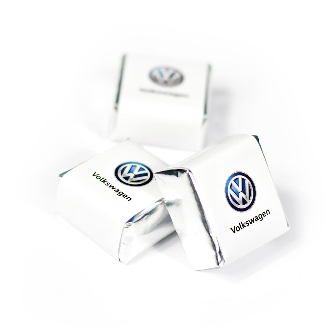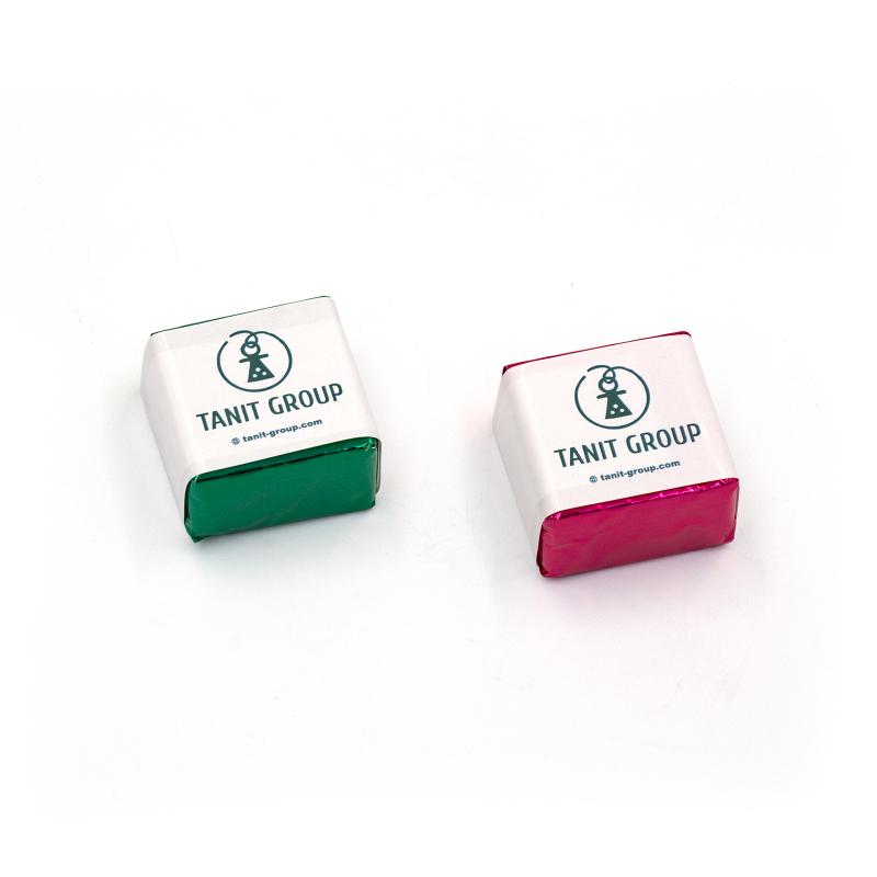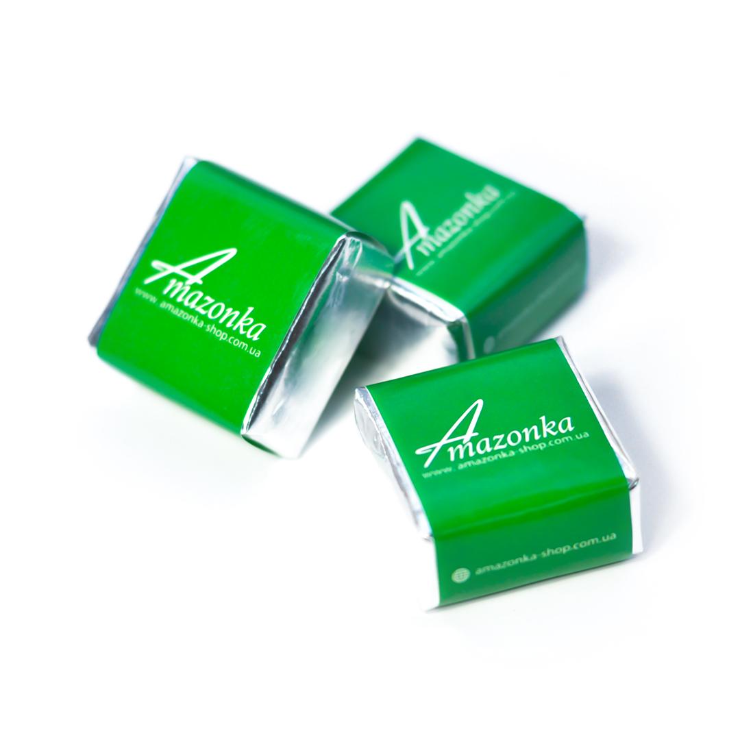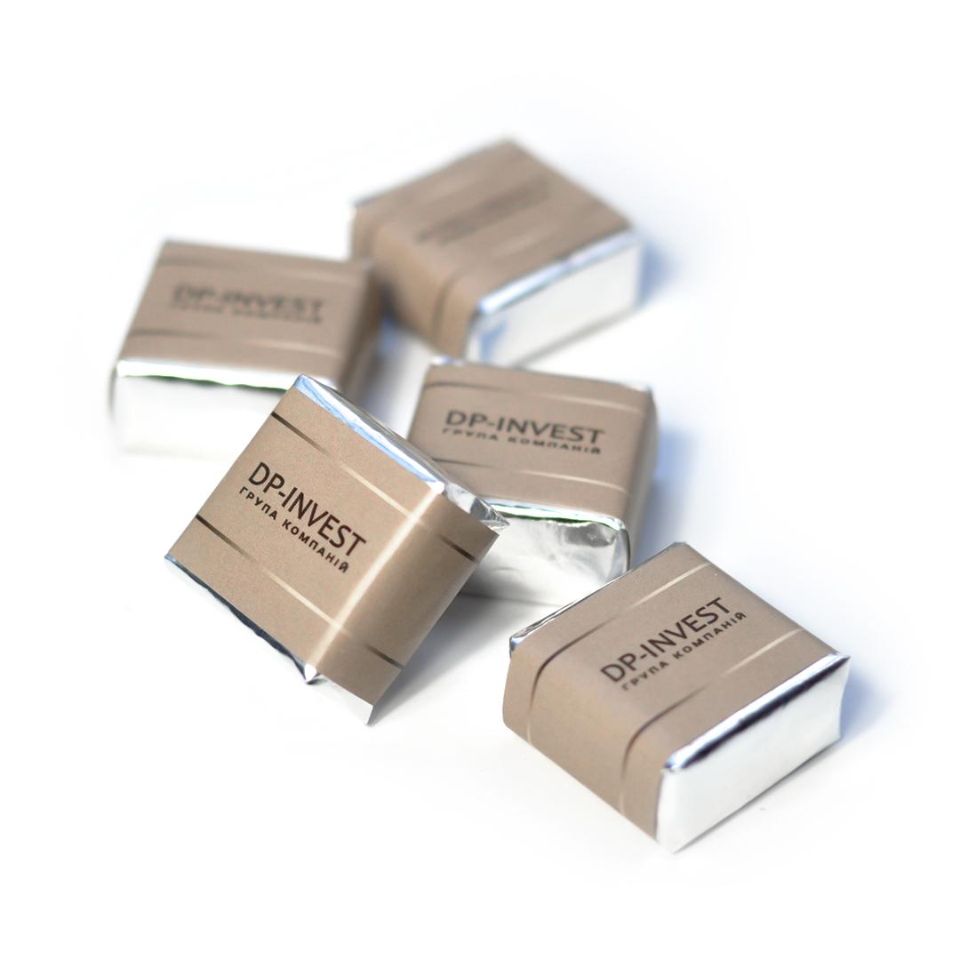 Шоколадно-вафельная конфета с логотипом 32 х 30 х 18 мм
