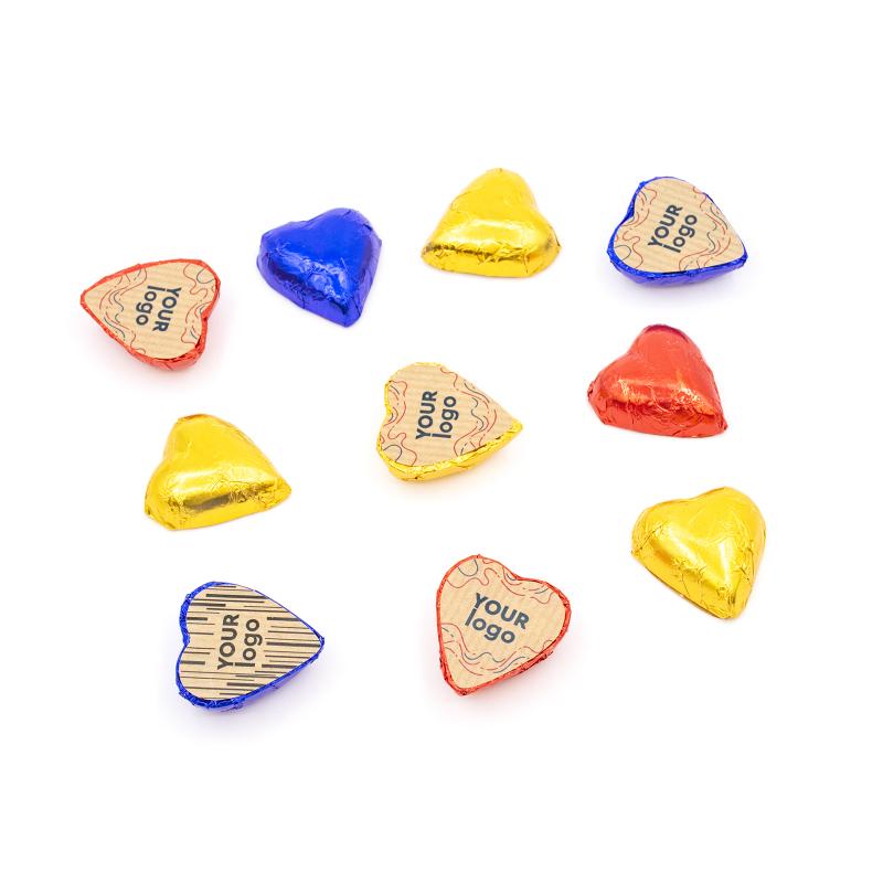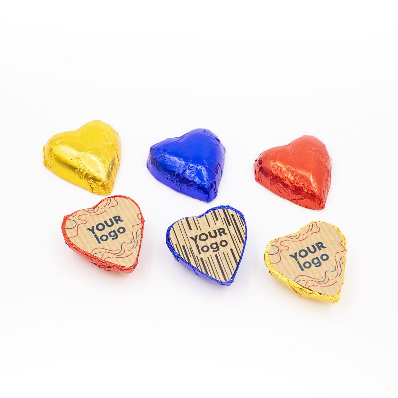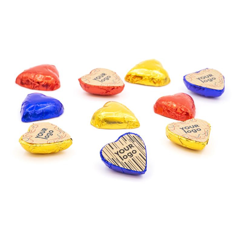 Подарочное шоколадное сердце весом 7,5 г — это стильное и вкусное решение для брендирования или приятного сувенира. Изготовлено из высококачественного шоколада: молочного (33%) или тёмного (60%). Упаковано в фольгу с крафтовой этикеткой, которая имеет полноцветную печать без белил. Доступные цвета фольги: золотой, красный, синий.