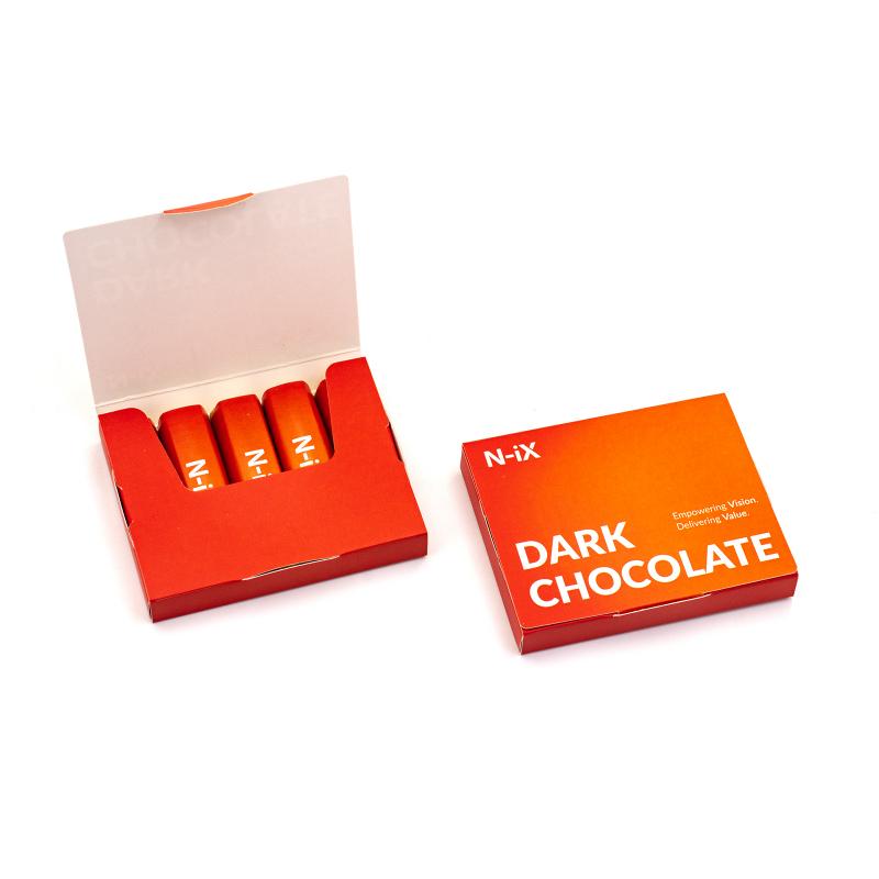 Шоколадный набор «Конверт» (48 г) — стильный корпоративный подарок с логотипом компании. Наполнение: премиальный натуральный немецкий шоколад (молочный или тёмный). Упаковка из картона 230 г с полноцветной печатью, матовой или глянцевой ламинацией. Фольга: золотая или серебряная. Размер: 83×65×12 мм.