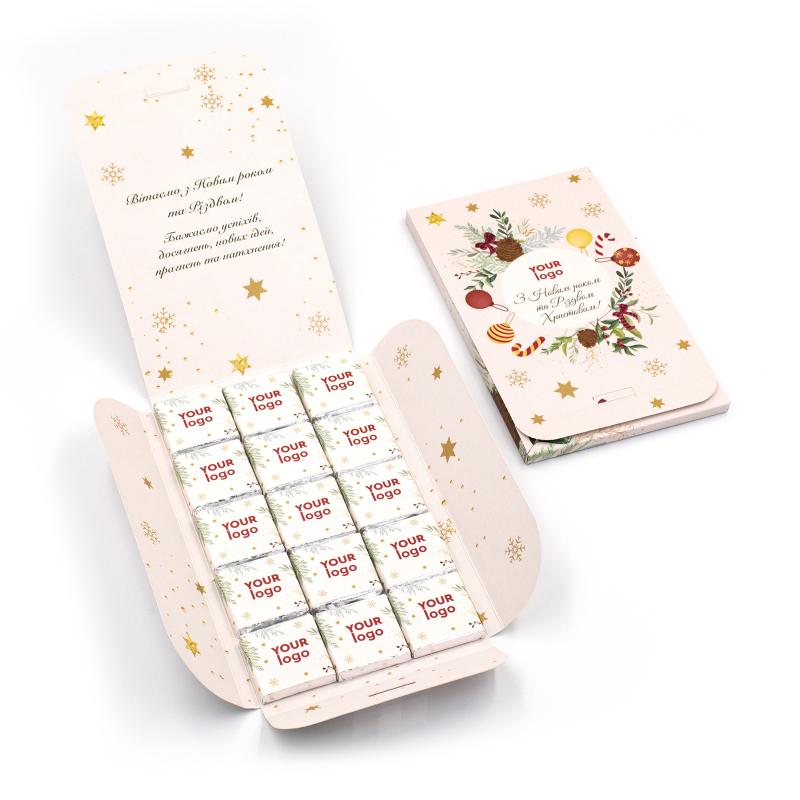 Наполнение: черный или молочный шоколад. Идеальный выбор для корпоративных подарков и рекламных акций.