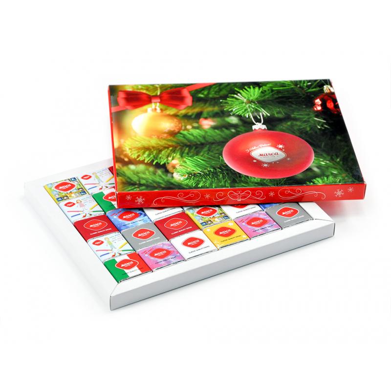 Шоколадный набор "Пенал" 150 г — элегантный подарок с возможностью брендирования. В комплект входит натуральный немецкий шоколад премиум-класса (молочный, тёмный или микс). Упакован в стильную картонную коробку (227 х 191 х 17 мм) с белым основанием, доступна полноцветная печать, ламинирование (матовое или глянцевое), а также тиснение фольгой (золото/серебро). Фольга конфет — на выбор: золотая или серебряная. Идеально подходит для корпоративных подарков с логотипом.