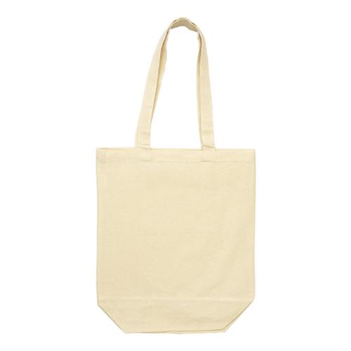 Полотняная сумка плотностью 170 г/м² с цветными ручками и элементами внизу. Сумка имеет одно основное отделение, широкое дно, а внутри — дополнительный карман для телефона или мелочей.