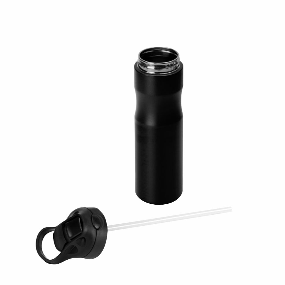 Металлическая одностенная спортивная бутылка Frontera Line Art 750 мл из нержавеющей стали с силиконовой трубочкой для питья отличается стильным современным дизайном.