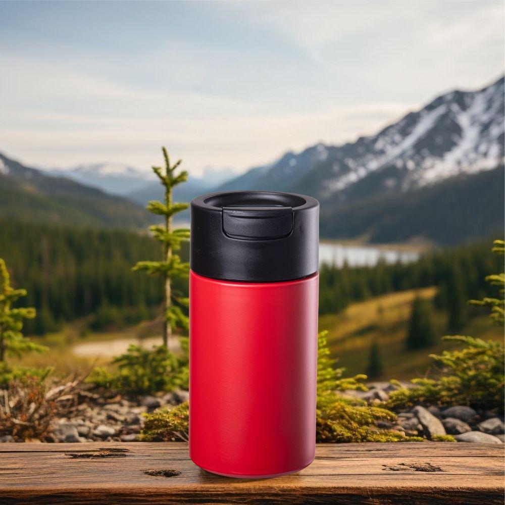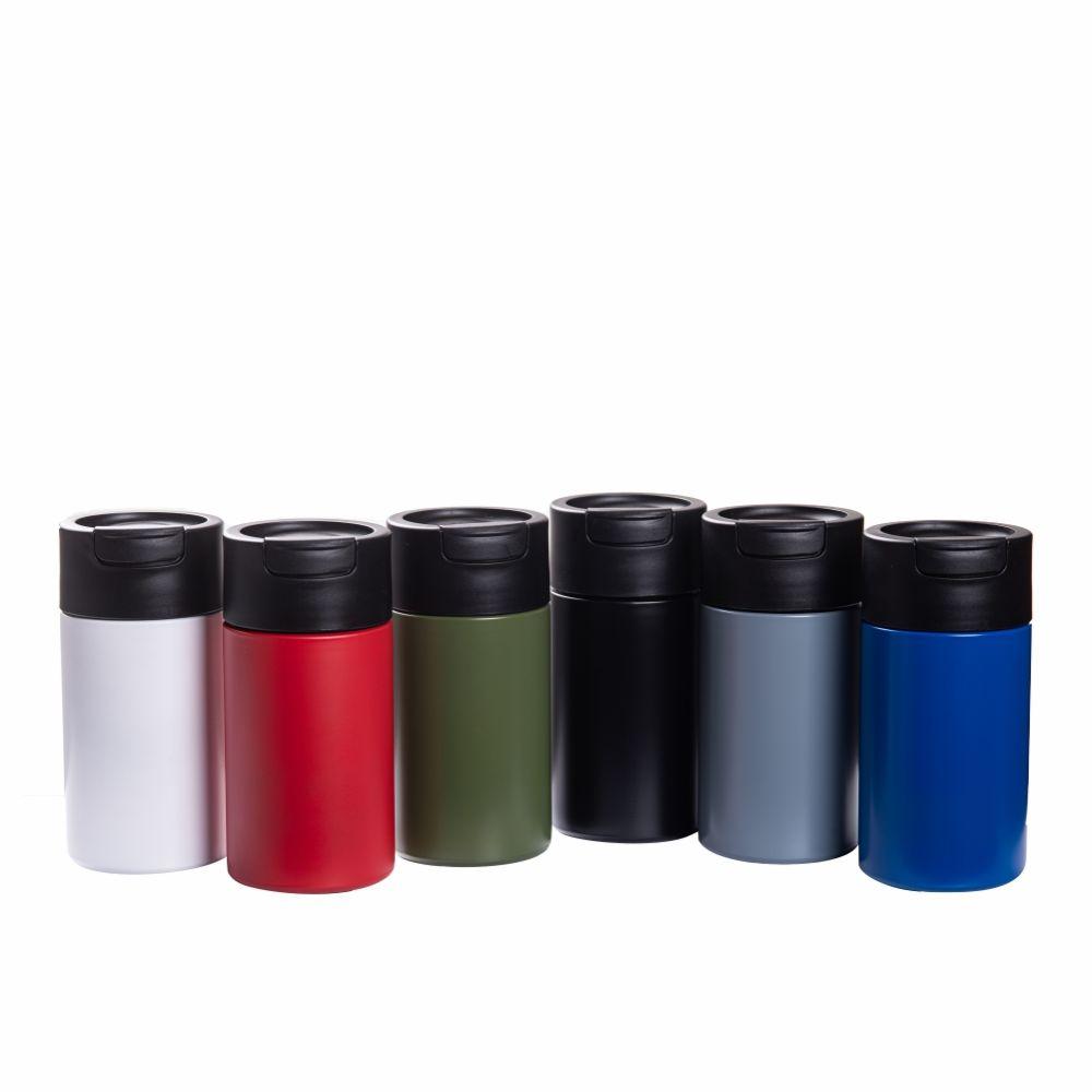 Объем 450 мл. Корпус изделия изготовлен из нержавеющей стали марок 304 (внутри) и 201 (снаружи). Крышка-дозатор без содержания BPA. Рекомендуется мыть вручную. Матовое покрытие не скользкое, поэтому кружка не выскальзывает из рук.