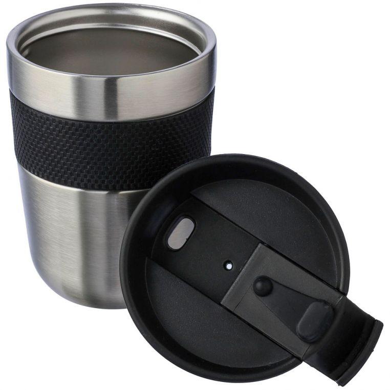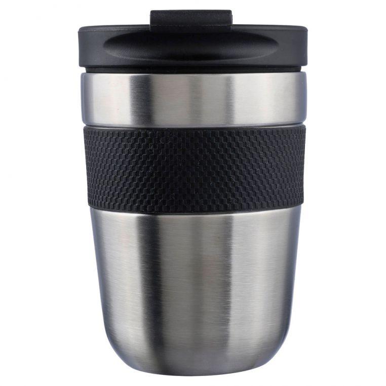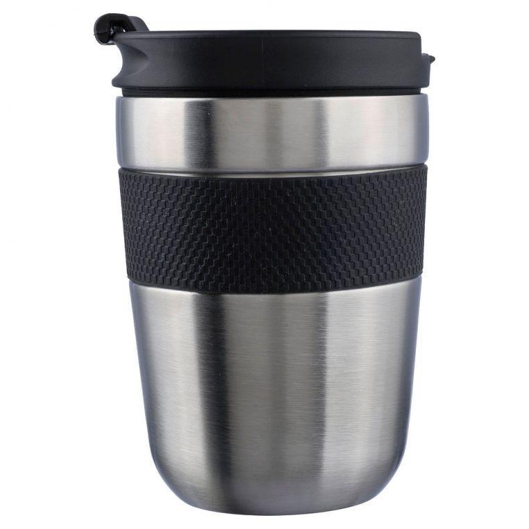 Термокружка с двойными стенками из нержавеющей стали. Надежная пластиковая крышка с отверстием для питья. Внутренняя часть изготовлена из нержавеющей стали 304, внешняя — из нержавеющей стали 201. Для удобства удержания в руке имеется силиконовая вставка. Сохраняет напитки горячими в течение 4 часов и холодными в течение 6 часов.