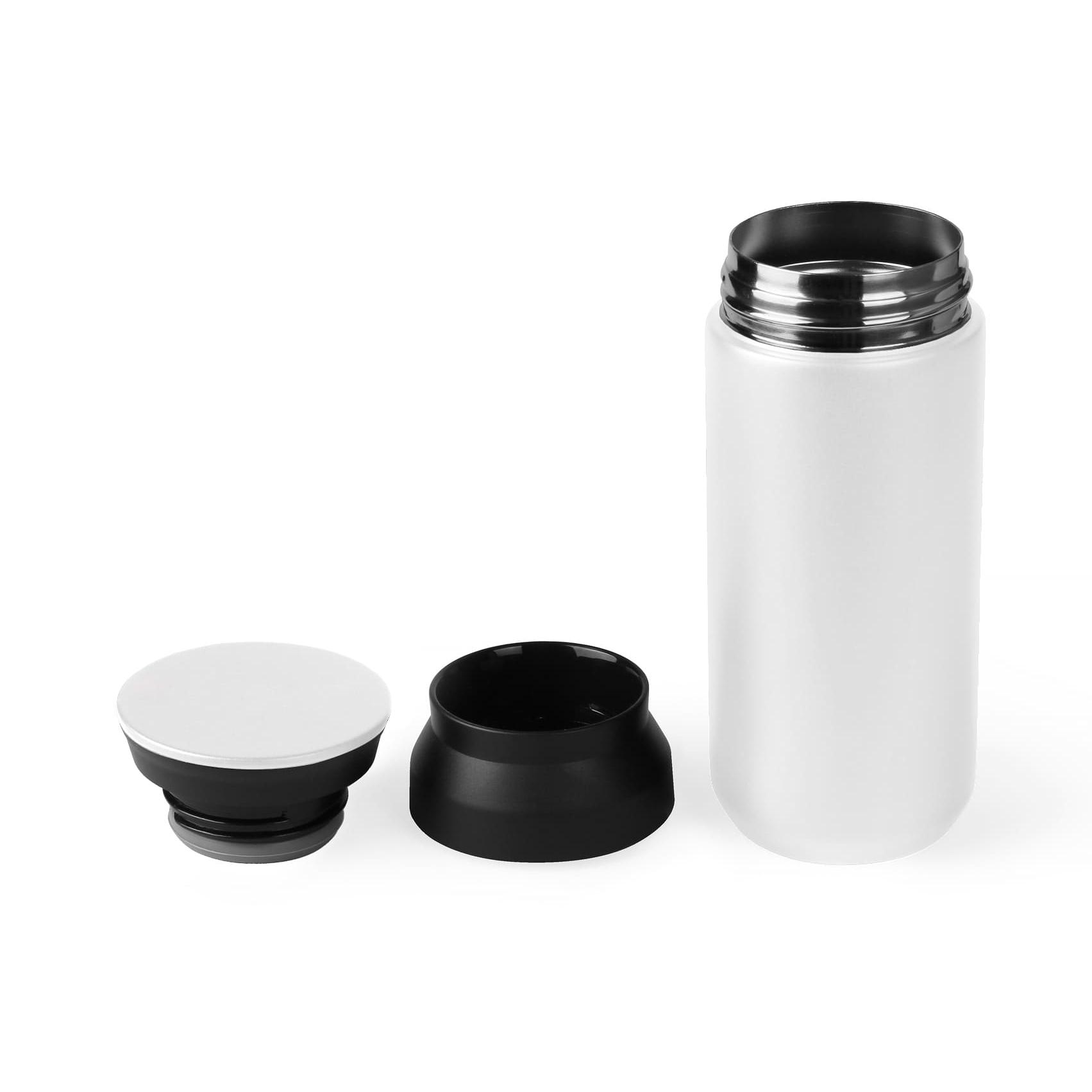 Вакуумная термочашка из нержавеющей стали, Покрытие – матовая эмаль. Поддерживает температуру в течение 8 часов. Герметичная пластиковая крышка имеет встроенный фильтр для чайных листочков, фруктов или льда, а также легко разбирается для мытья. Объем 350 мл., высота 17 см., диаметр 6,7 см. Индивидуальная картонная подарочная коробка. Размер индивидуальной коробки: 17,8 х 7,4 х 7,4 см. Метод нанесения гравировки, ультрафиолетовая печать, тампопечать на верхней части крышки. Диаметр места нанесения на крышке 6,7 см.