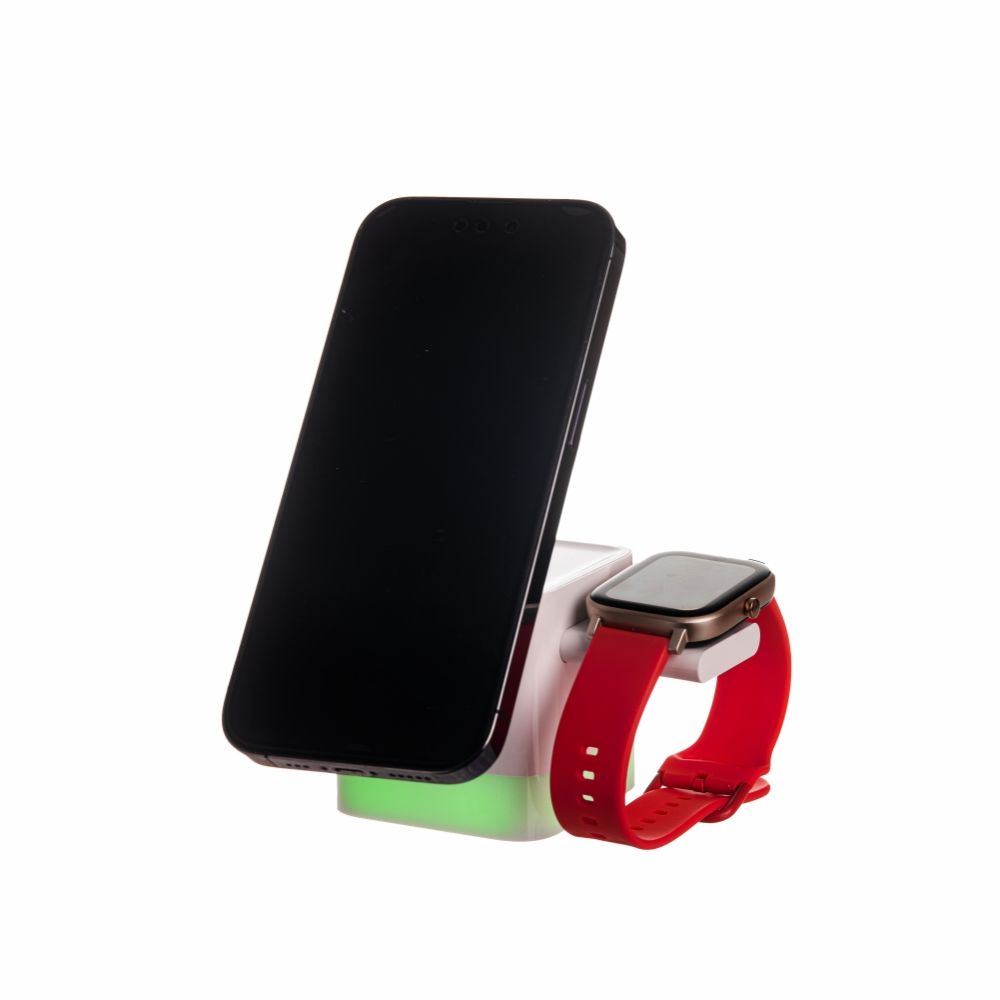 Модель призначена для заряджання смартгодинника, мобільного телефону та навушників. Одночасно може заряджати 2 гаджети. Вхідний інтерфейс – Type-C.