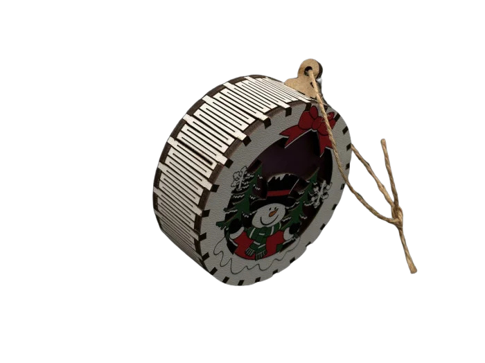 Дерев'яні новорічні іграшки з підсвічуванням Сніговик 85х32мм для вашого логотипу
