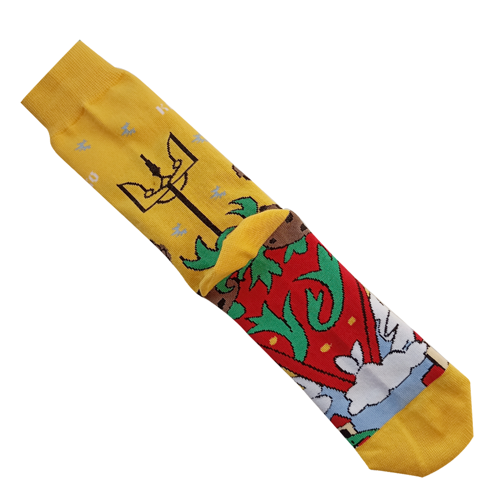 Шкарпетки виготовлені з бавовни вищого гатунку, яка зручна в експлуатації, дозволяє нозі дихати, служить тривалий час. Поліамід у складі додає міцності та робить шкарпетку більш зносостійкою, а еластан дає тягнучість, що дозволяє шкарпетці комфортно обтягувати ногу та не сковзати. Склад шкарпетки: бавовна 75%, поліамід 20%, еластан 5%. Кількість кольорів, які можуть бути присутніми одночасно в одному ряду малюнка 5, один з яким є тлом малюнка. Мисок, п’ята, резинка шкарпетки може бути будь-якого кольору, але однотонною. Шкарпетки можуть бути чоловічими, жіночими, дитячими.