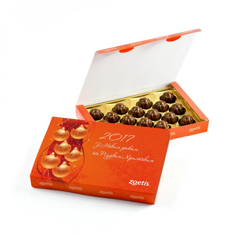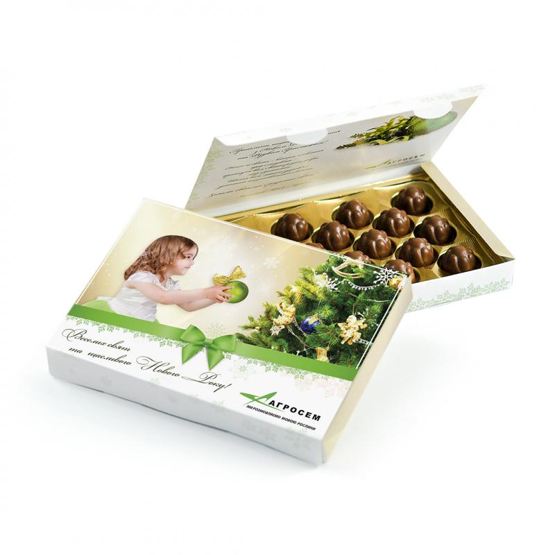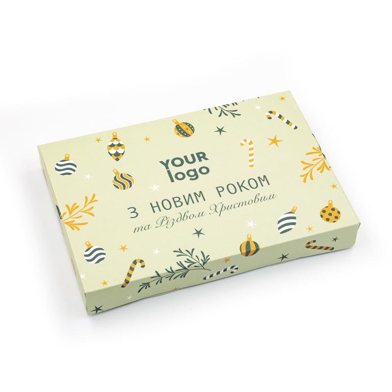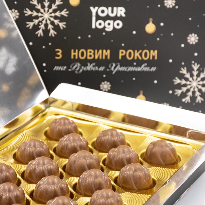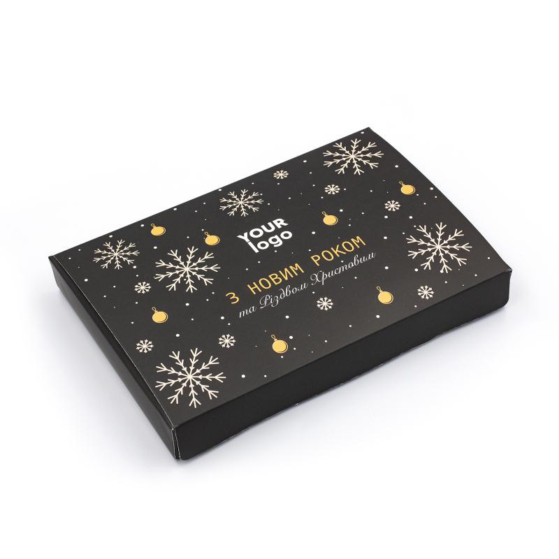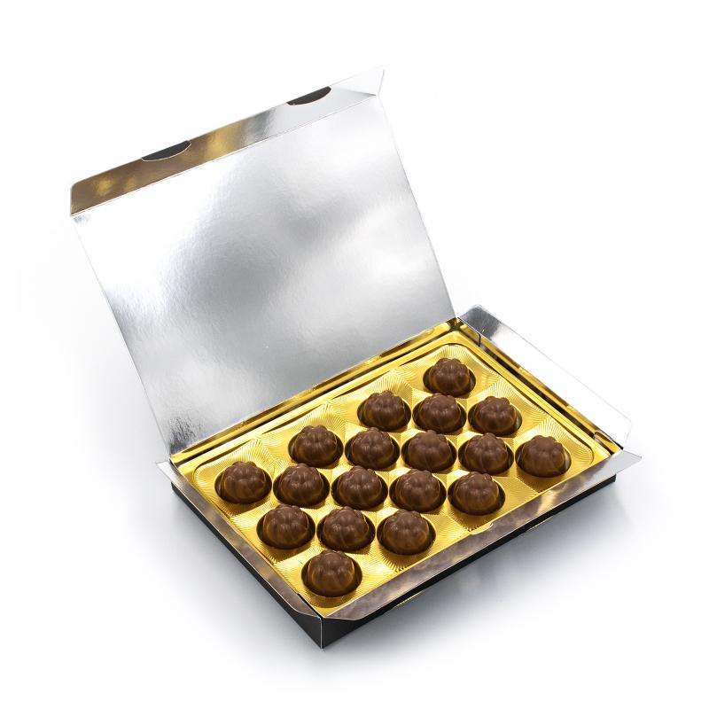 Коробка цукерок Gold Nut вагою 205 г — стильний подарунок для поціновувачів шоколаду. Усередині — шоколадні цукерки з цілим лісовим горіхом. Коробка виготовлена з якісного картону щільністю 230 г. Можливі варіанти друку — односторонній, двосторонній або преміум із застосуванням золотого чи срібного тиснення, а також матове або глянцеве ламінування. Розмір упаковки: 220 × 150 × 27 мм, вага — 205 г. Чудово підходить для подарунків і презентацій.