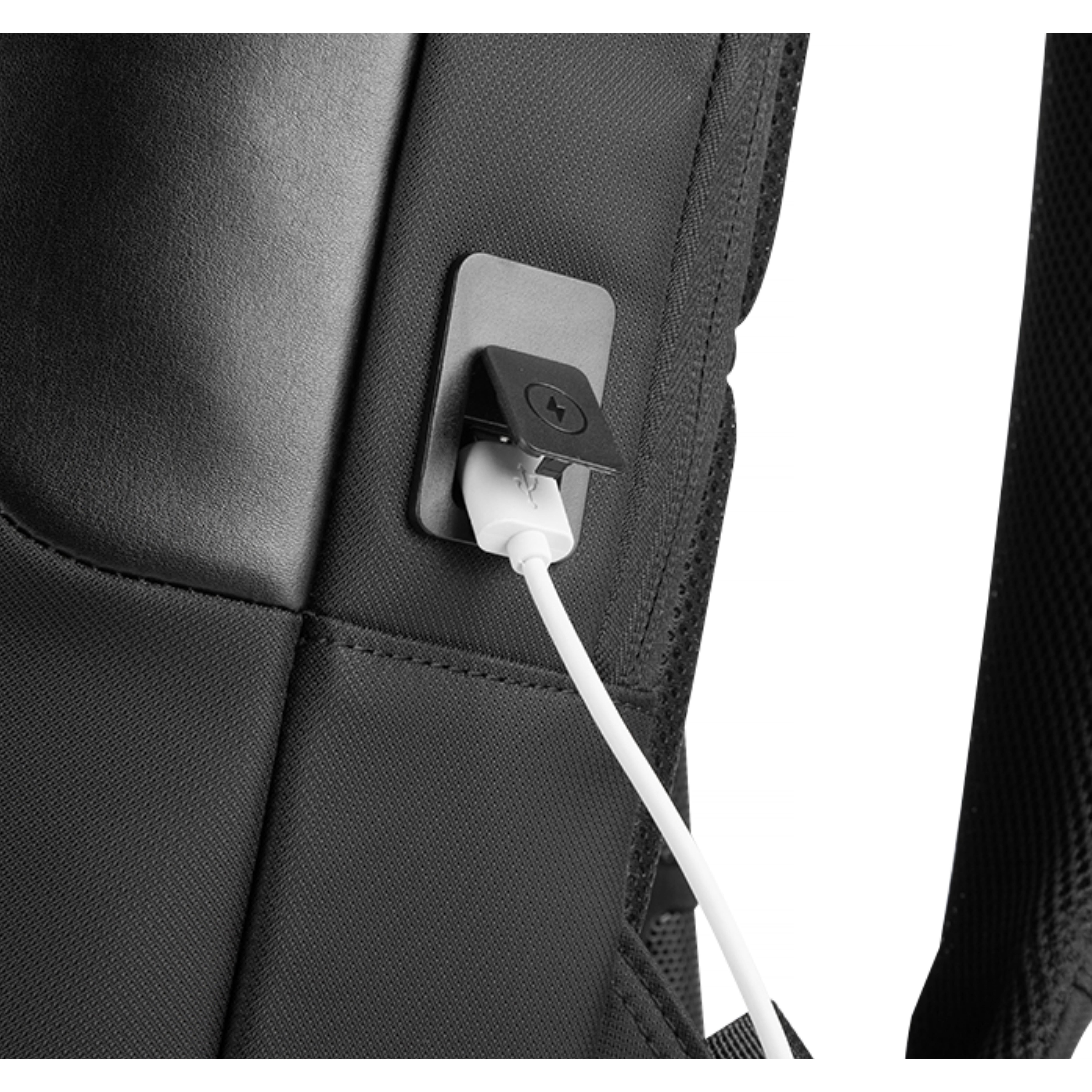 Має велике відділення, з фіксаторами для ноутбуку та планшету, 1 фронтальна кишеня, одна бокова прихована кишеня, USB порт. М'яка спинка, лямки з пасивною системою вентиляції. Ущільнена м'яка підкладка.