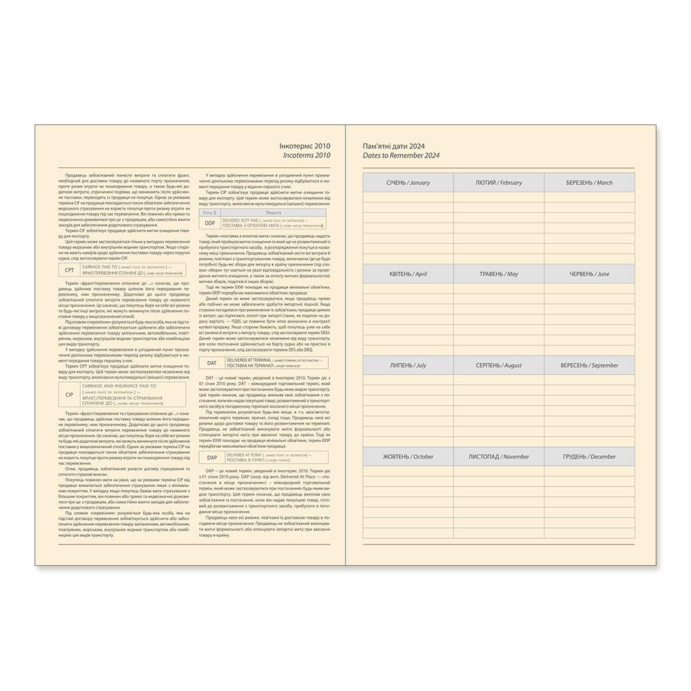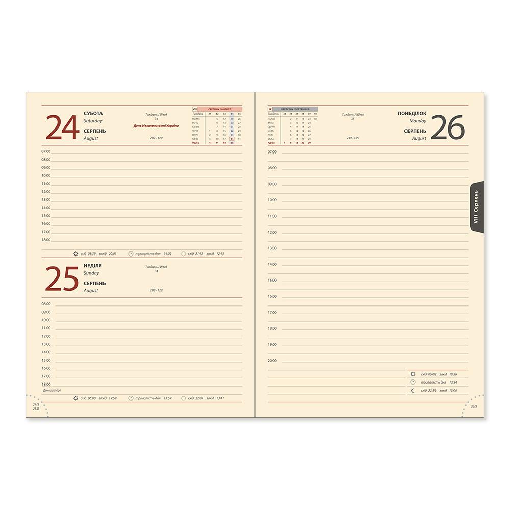 Щоденник недатований, з індивідуальною обкладинкою формату А5. Кількість листів: 176л. Блок із кремового паперу 70 г/м².